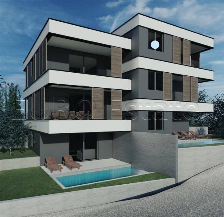 FOR SALE: apartment with four rooms with gross area of 120,63 m2 in an urban villa in the town of Šimuni on the island of Pag.
