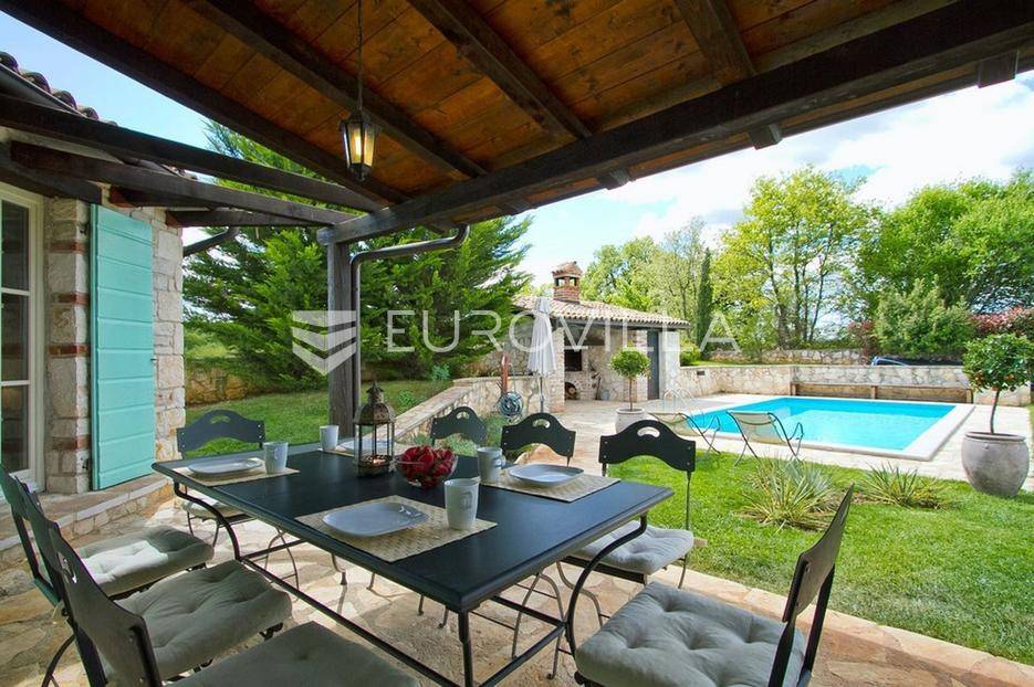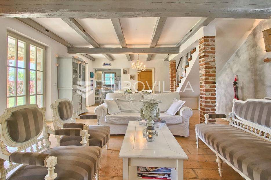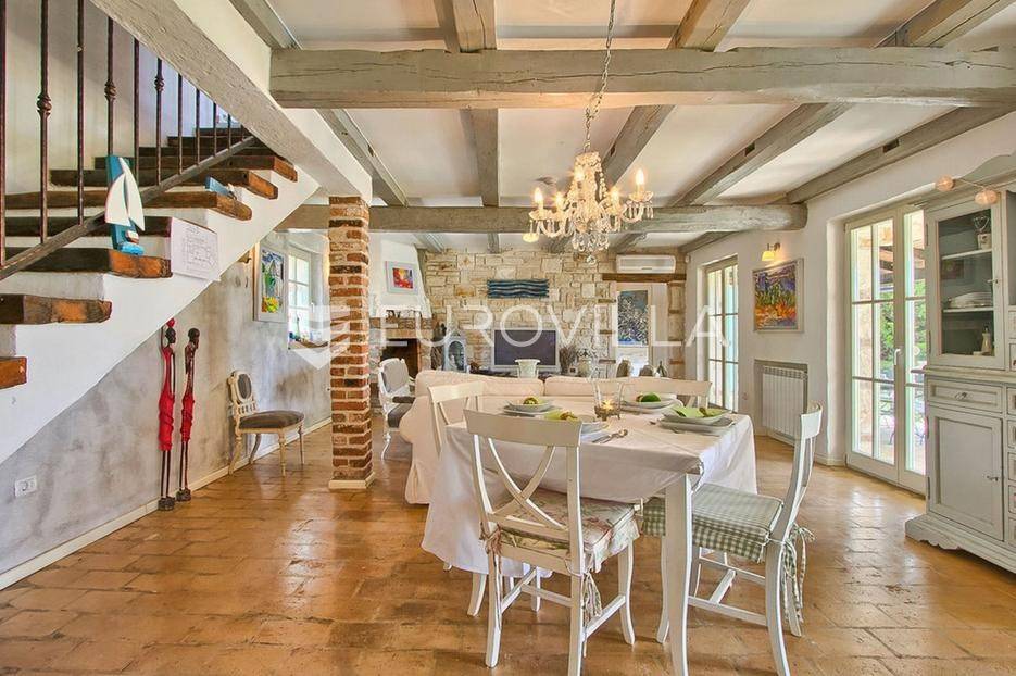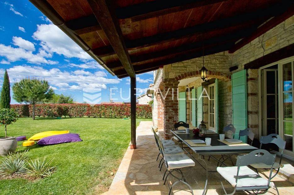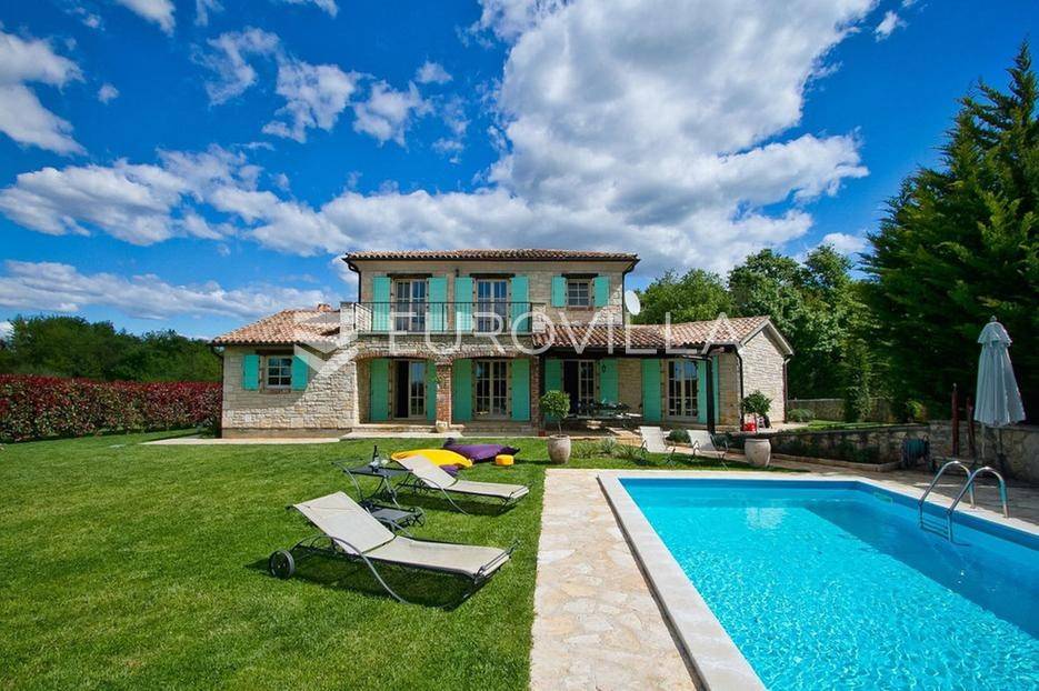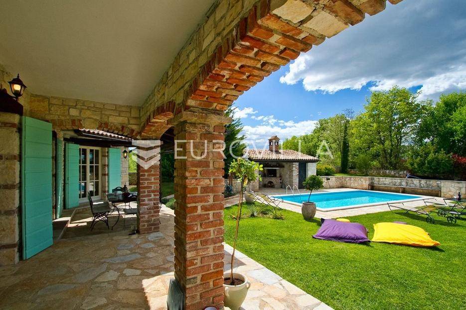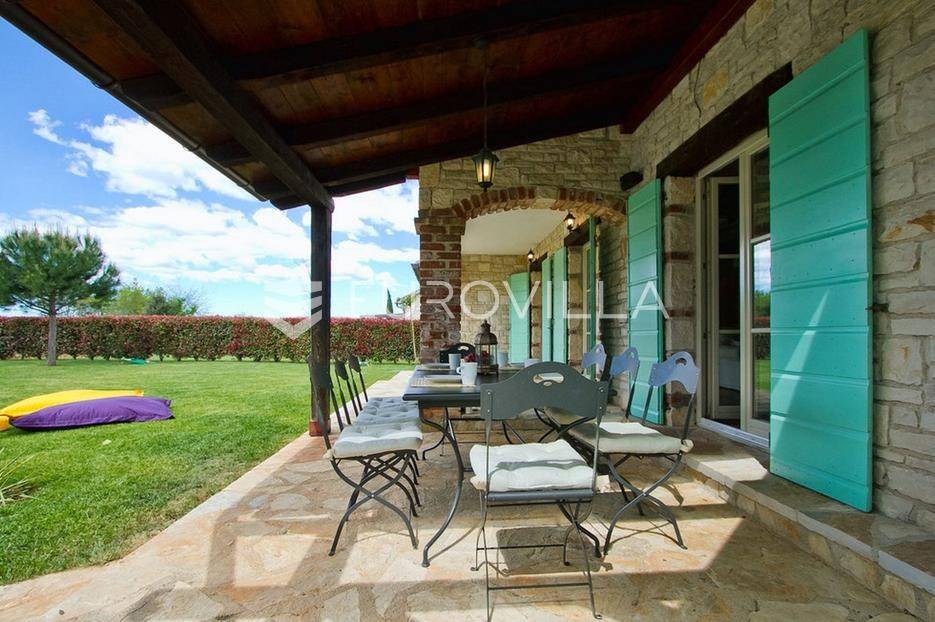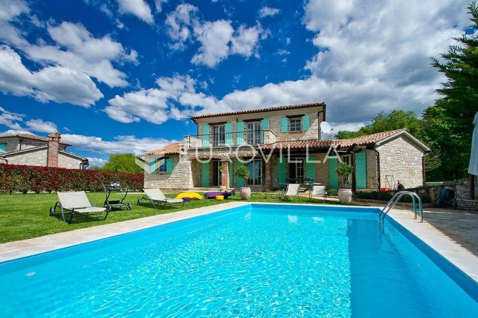 Istra, Tinjan nedaleko od Poreča. Luksuzna kamena villa površine 150 m2 s bazenom 32 m2 na uređenoj parceli ukupne površine 968 m2. Jedinstvena lokacija koja garantira potpunu privatnost I mir.Izgrađena na dvije etaže. Sastoji se od prostranog dnevnog boravka s kuhinjom i blagovaonicom otvorenog tlocrta s direktnim izlazom na terasu i vrt, spavače sobe i kupaonice na prvoj etaži. Hodnika, dvije spavače sobe s izlazima na balkon, kupaonice na drugoj. U sklopu dvorišta nalazi se natkriveni prostor s vanjskim roštiljem, a ispred kuće parking za dva vozila.Nalazi se na lijepoj lokaciji na rubu malog, Istarskog sela. Nudi privatnost i mir i idealna je za opušten, miran obiteljski odmor. Središnja Istra jedna je od rijetkih regija Sredozemlja koja se diči kvalitetom netaknutih pejsaža i bogatim nasljeđem.Sve ostale informacije na upit