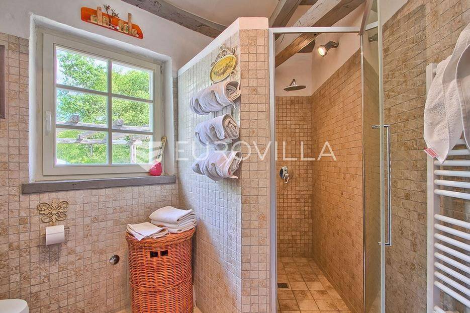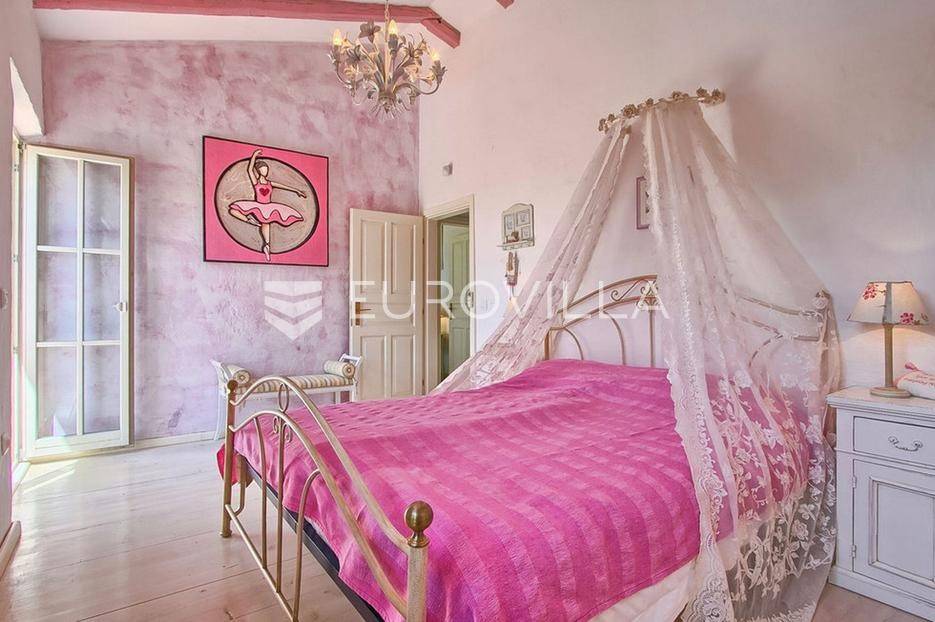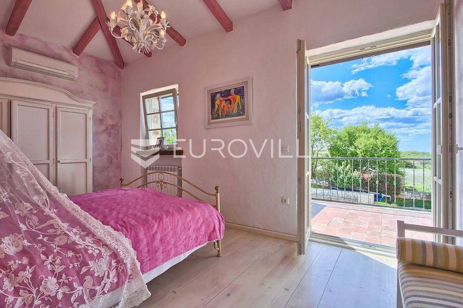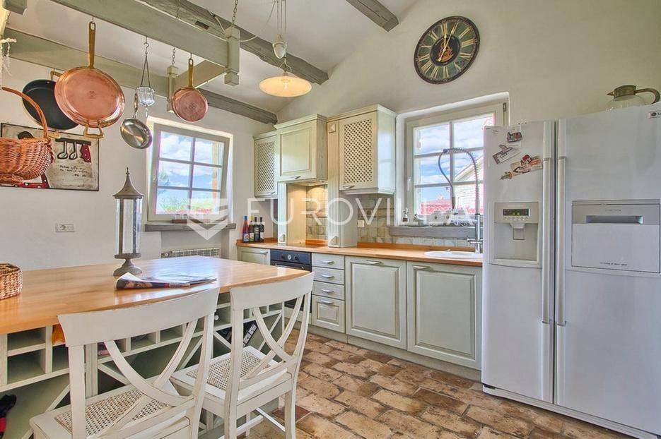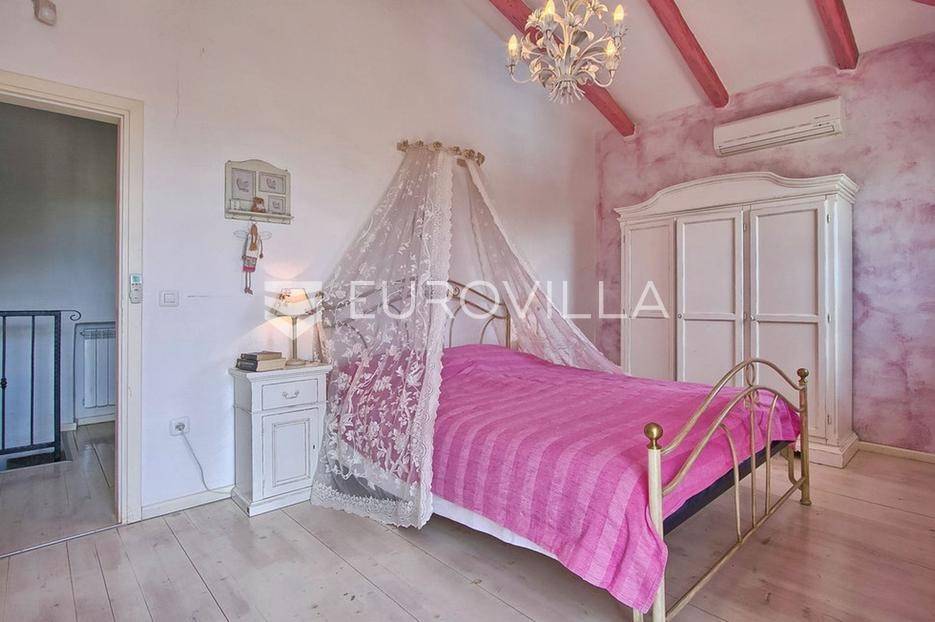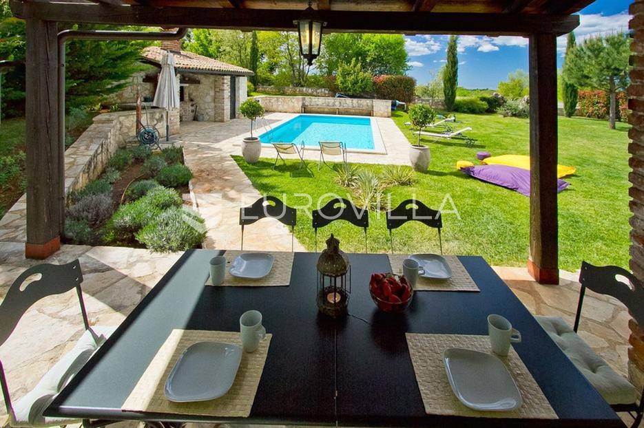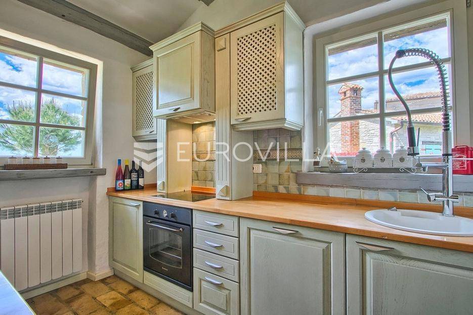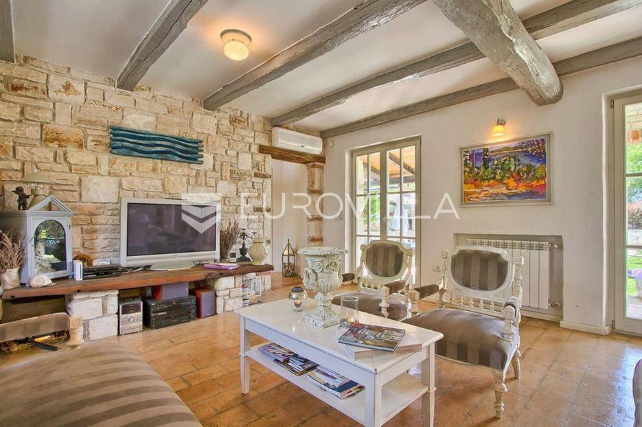 Istra, Tinjan nedaleko od Poreča. Luksuzna kamena villa površine 150 m2 s bazenom 32 m2 na uređenoj parceli ukupne površine 968 m2. Jedinstvena lokacija koja garantira potpunu privatnost I mir.Izgrađena na dvije etaže. Sastoji se od prostranog dnevnog boravka s kuhinjom i blagovaonicom otvorenog tlocrta s direktnim izlazom na terasu i vrt, spavače sobe i kupaonice na prvoj etaži. Hodnika, dvije spavače sobe s izlazima na balkon, kupaonice na drugoj. U sklopu dvorišta nalazi se natkriveni prostor s vanjskim roštiljem, a ispred kuće parking za dva vozila.Nalazi se na lijepoj lokaciji na rubu malog, Istarskog sela. Nudi privatnost i mir i idealna je za opušten, miran obiteljski odmor. Središnja Istra jedna je od rijetkih regija Sredozemlja koja se diči kvalitetom netaknutih pejsaža i bogatim nasljeđem.Sve ostale informacije na upit