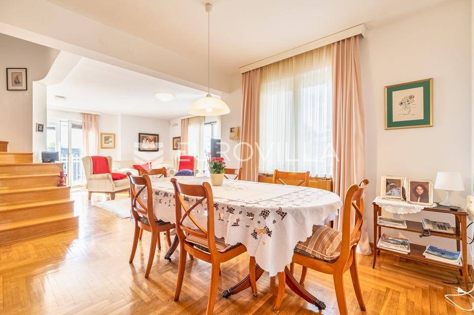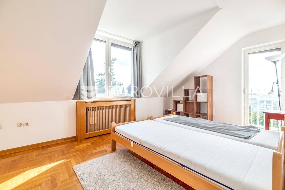 Šestine, Kulmerska ulica, dvojna obiteljska kuća površine 2000.75 m2. Kuća je zatvorene površine 162.75 m2 s dvije terase ukupne veličine 36.2 m2, balkonom te garažom 28.95 m2, Ukupno neto korisna površina: 200.75 m2Podrum: garaža za 2 automobila, ostava, vešeraj, toalet.Prizemlje: dnevni boravak s blagovaonicom, kuhinja s izbom, velika terasa, balkonKat: dvije spavaće sobe s ugradbenim ormarima, kupaonica s kadom, terasa.Potkrovlje: dvije spavaće sobe i kupaonica s tuš kabinom.Ostale informacije na upit.