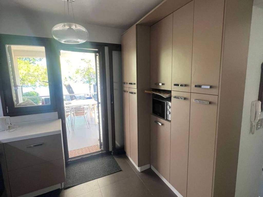 Iz prizemlja se ulazi u prostrani dnevni boravak s kuhinjom, blagovaonicom i dodatnim ležajem, prekrasan otvoren pogled na more iz dnevnog boravka, u prizemlju je i prostrana natkrivena terasa. Ispod terase se nalaze dodatna spremišta.