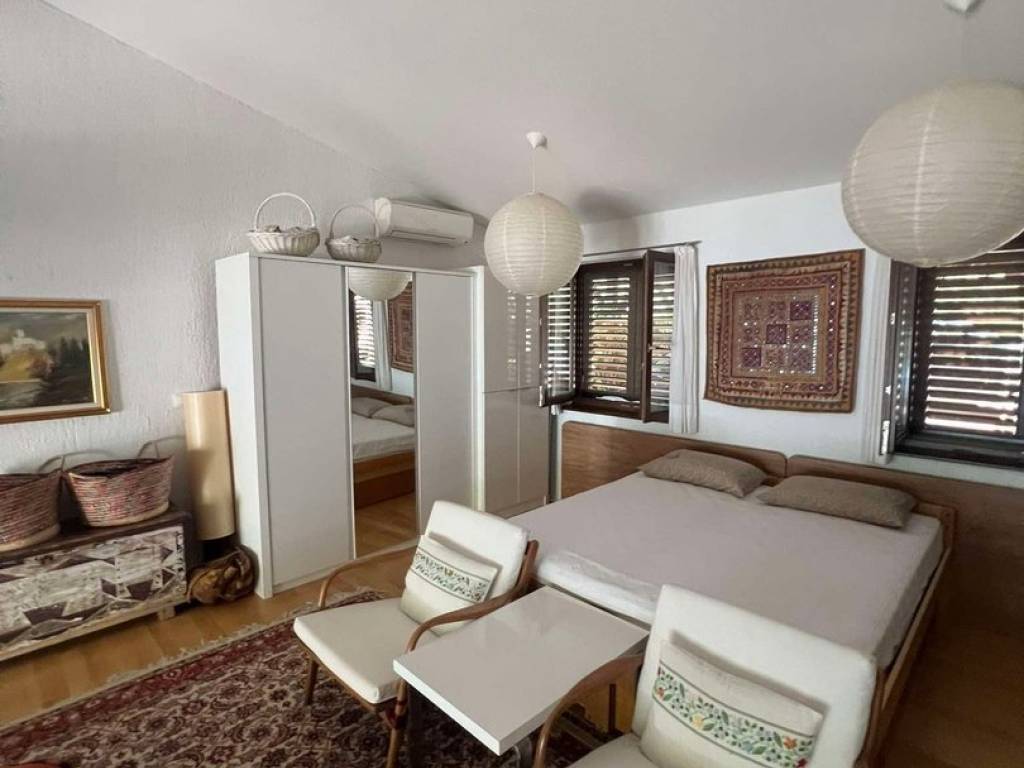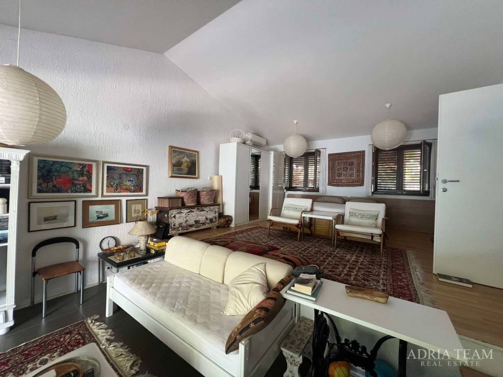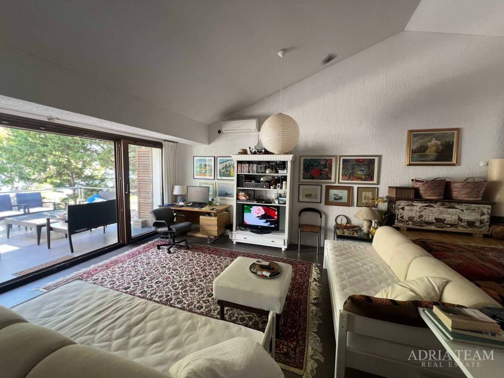 Unutarnje stepenište vodi na kat gdje se nalazi jednosobni apartman s dnevnim boravkom, kupaonicom, kuhinjom i terasom s otvorenim pogledom na more.