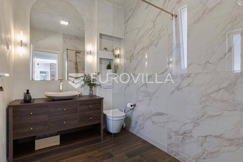 Vila se sastoji od prostranog, otvorenog dnevnog boravka koji se spaja s modernom kuhinjom i blagovaonicom. Prostor odiše svjetlošću zahvaljujući velikim prozorima koji pružaju osjećaj prostranosti. Dvije luksuzno opremljene spavaće sobe svaka imaju vlastitu kupaonicu, osiguravajući maksimalnu udobnost i privatnost. Sve prostorije su klimatizirane (Daikin klima uređaji), dok kupaonice spavaćih soba imaju podno grijanje (Danfoss).