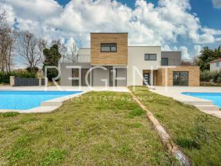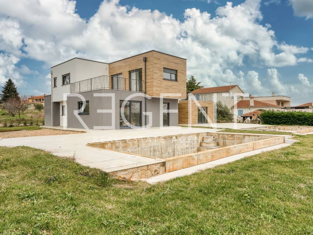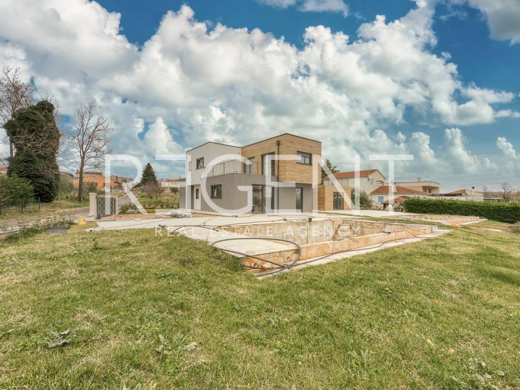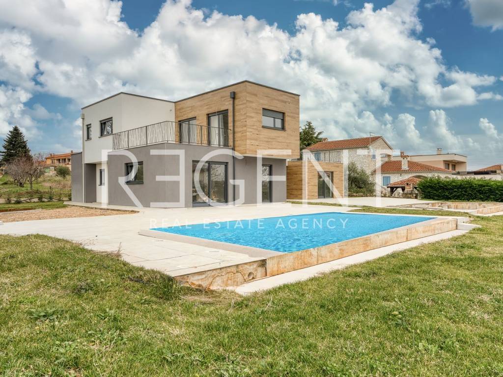 We present a house located in a quiet part of Kaštelir-Labinci, a few minutes' drive from Poreč and the coast. The property is intended for buyers looking for a functional and modern home for family life or a reliable investment with the potential for tourist rental. The surroundings offer peace and privacy, while at the same time providing easy access to shops, schools, restaurants and other everyday amenities. The proximity of Poreč and the coast makes the location practical for living and use throughout the year. The house extends over two floors and covers 119 m² of net area. On the ground floor there is a living room connected to the kitchen and dining room, with direct access to the terrace and the area by the pool. On the same floor there is an entrance area, a bedroom, a bathroom, an additional toilet and a storage room. Upstairs there is a sleeping area of the house with three bedrooms and two bathrooms. A hallway and staircase connect the floors, and a terrace of 22.5 m² provides additional outdoor space with a view of the surroundings. The house has a garden of 556 m², and two parking spaces are provided within the plot. Ceramics are installed in all rooms as a floor covering. The house is equipped with air conditioning and electric underfloor heating, and the southwest orientation allows good natural lighting during the day. The location of the house allows easy access to everyday amenities. Nearby there are shops, a restaurant, a school and other services, while Poreč and the coast can be reached by a short drive. The area is known for its peace, order and good connection with the coast. For any additional information and to arrange a viewing, we are at your disposal.