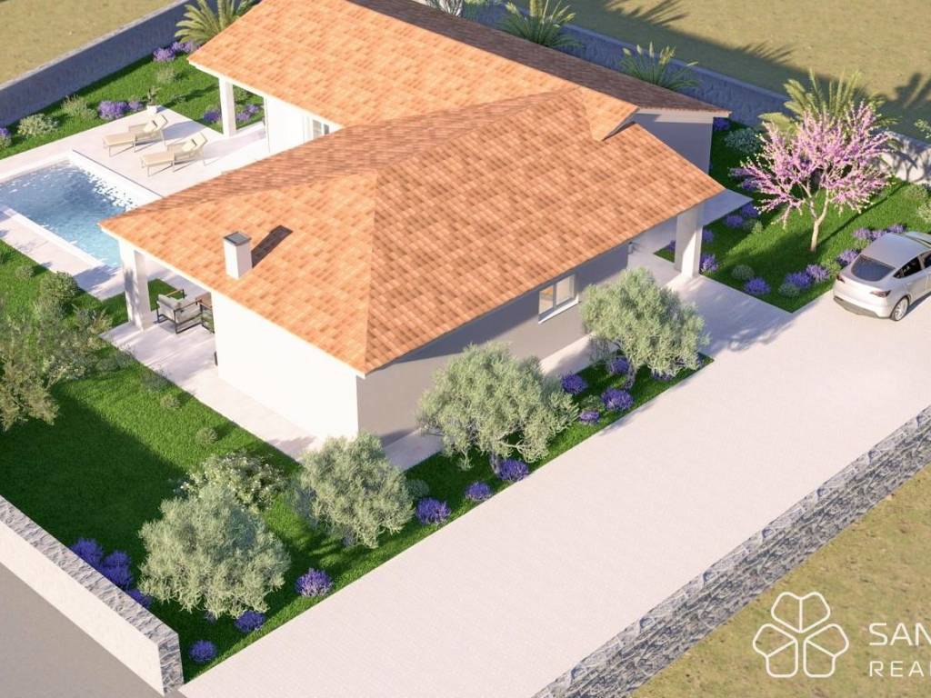 Villa Labin - ground floor - living area 130.45 m² (3 bedrooms + 2 bathrooms) + 1 terrace + swimming pool with sundeck + garden + 3 parking spaces, on a plot of 915 m² = 498,000 EUR (unfurnished)