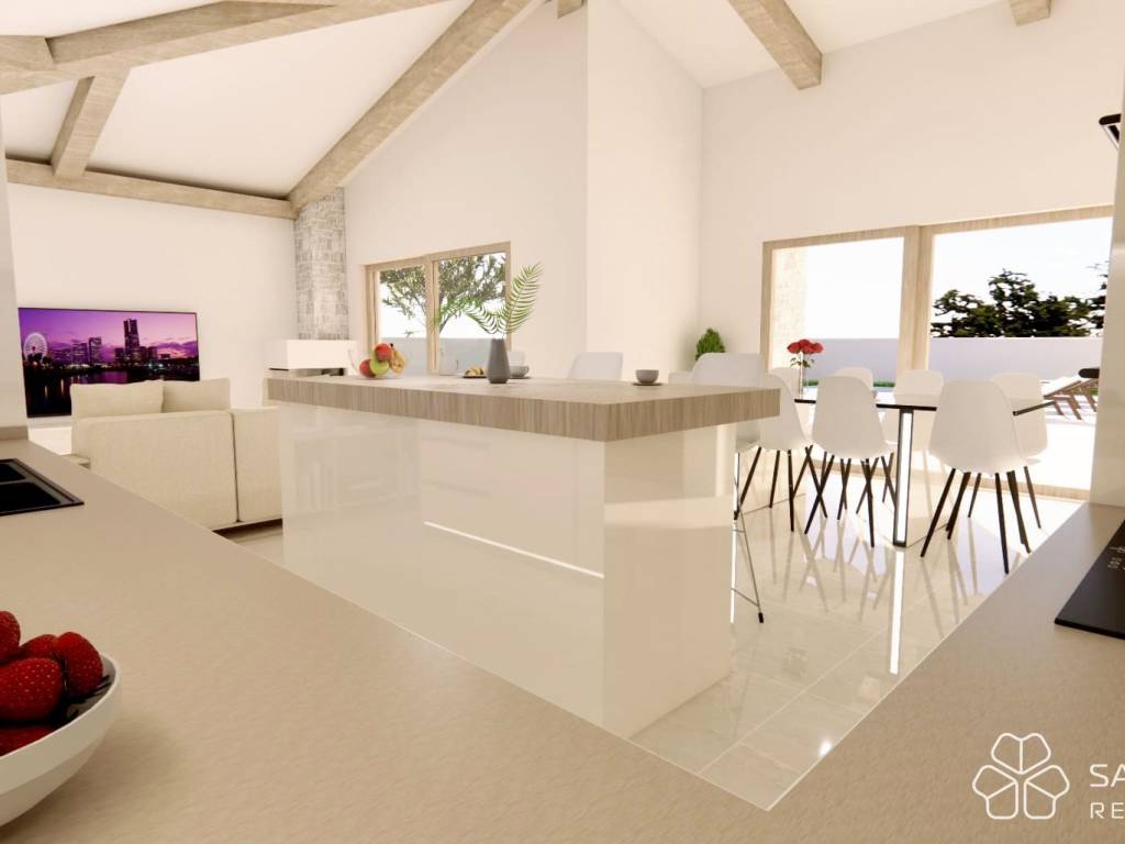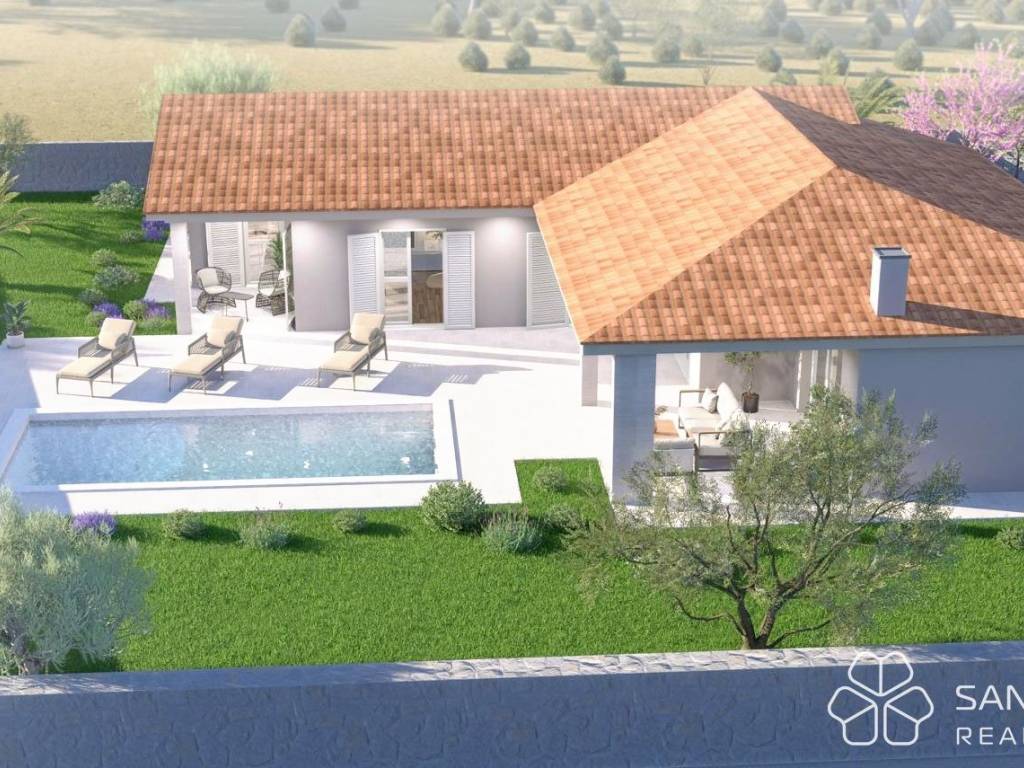 For sale is a modern single-storey house, currently under construction, located in a quiet location, 15 minutes drive from the center of Labin. Surrounded by nature, olive groves and family houses, this property offers privacy and a relaxing atmosphere away from the hustle and bustle of the city.