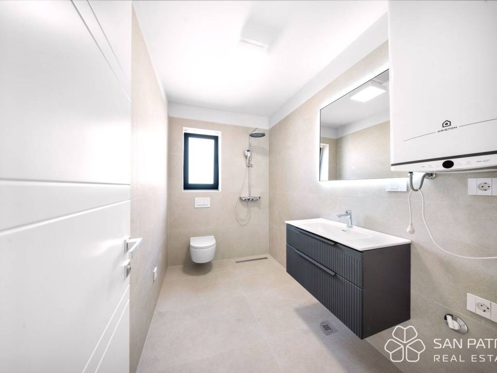 Each apartment includes a private bedroom with an en-suite bathroom, underfloor heating, and air conditioning for year-round comfort. Ground-floor units feature private gardens, while all residents share a 250 m² rooftop terrace – perfect for socialising, sunbathing, and unforgettable evenings overlooking the sea.