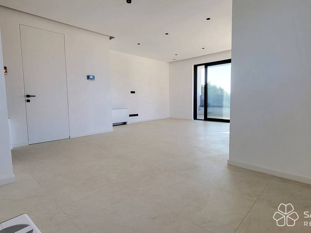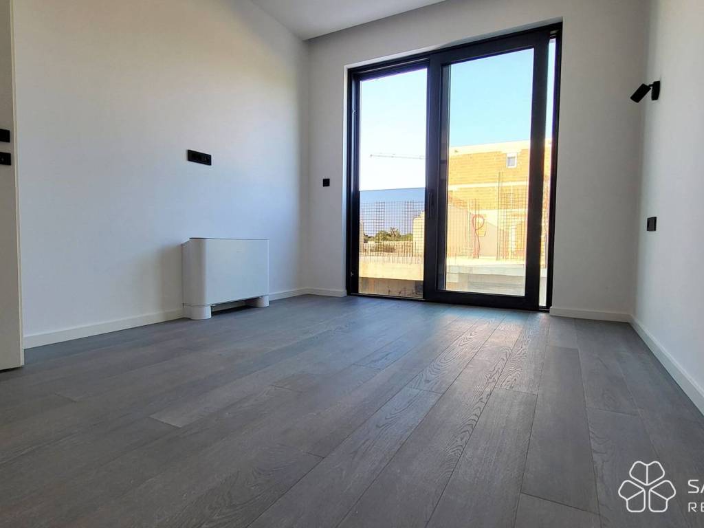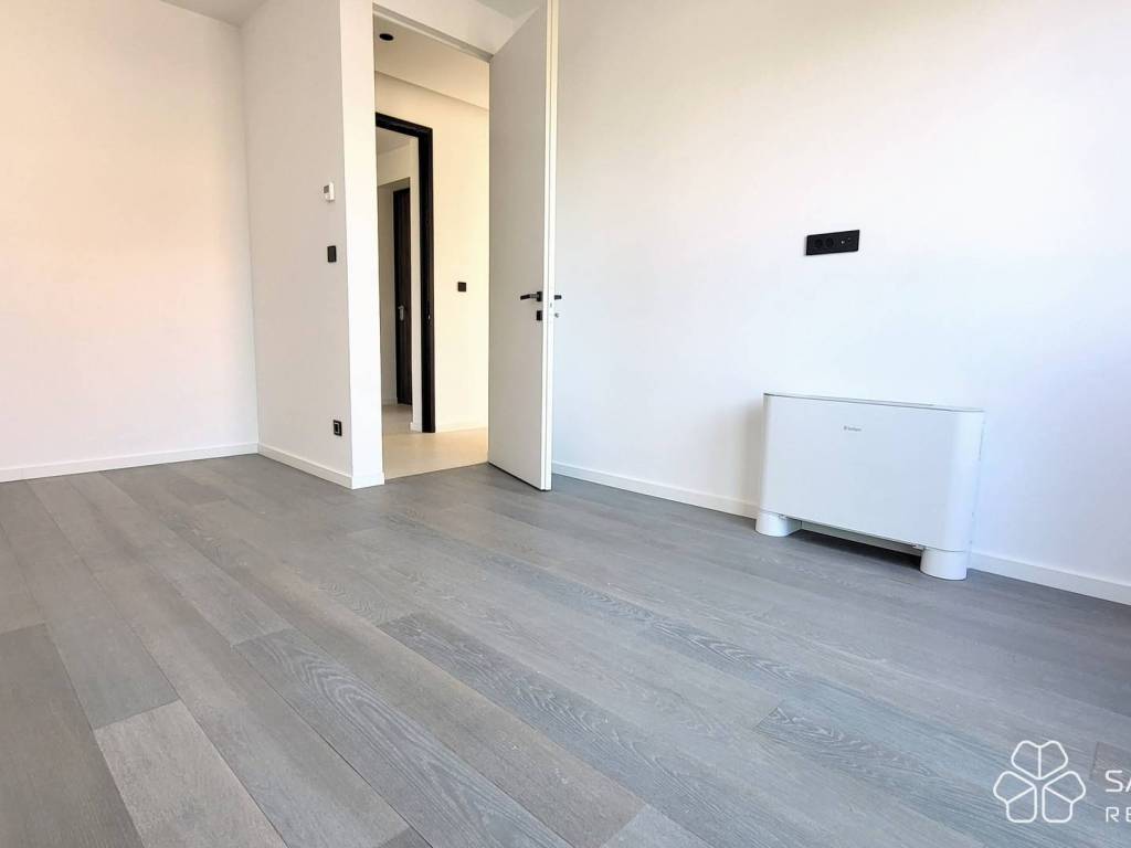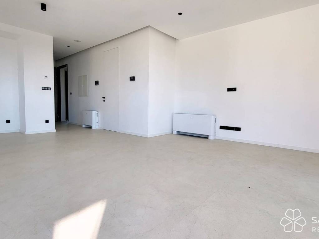 The apartment with a total living area of 55.71 m² consists of a hallway, living room with kitchen and dining room, one bedroom, bathroom, utility room and a covered balcony of 15.23 m². In addition, the apartment also has a storage room in the basement of 2.81 m². Top quality materials were used in the construction and furnishing - underfloor heating with a heat pump, aluminum joinery and air conditioning in all rooms. The apartment is sold unfurnished, leaving you free to choose the furniture and kitchen according to your own taste.