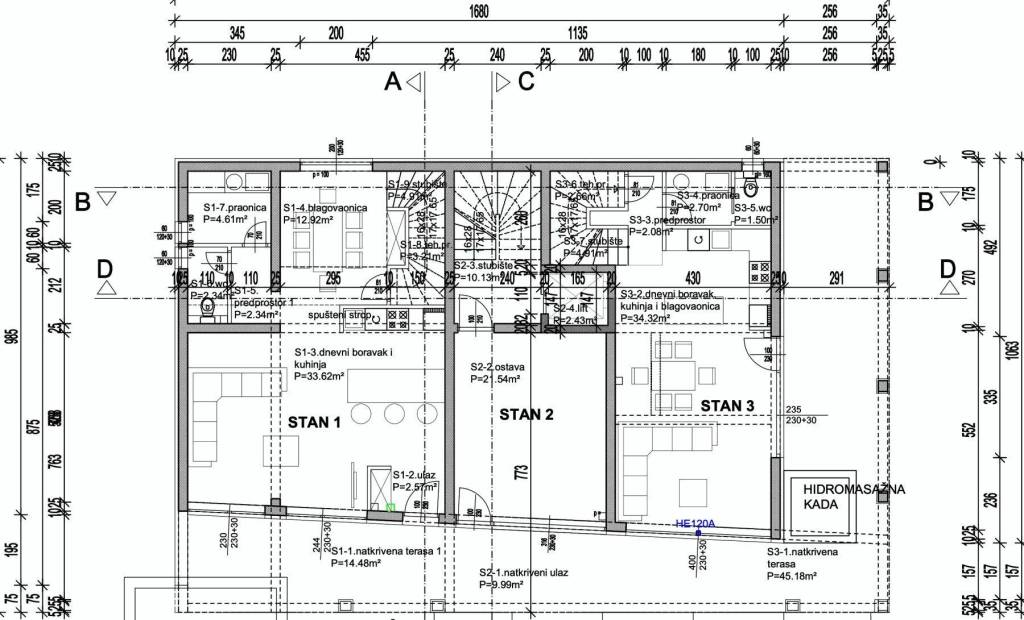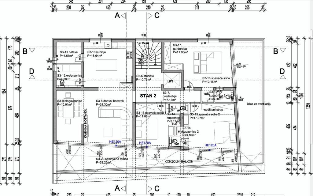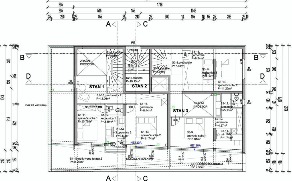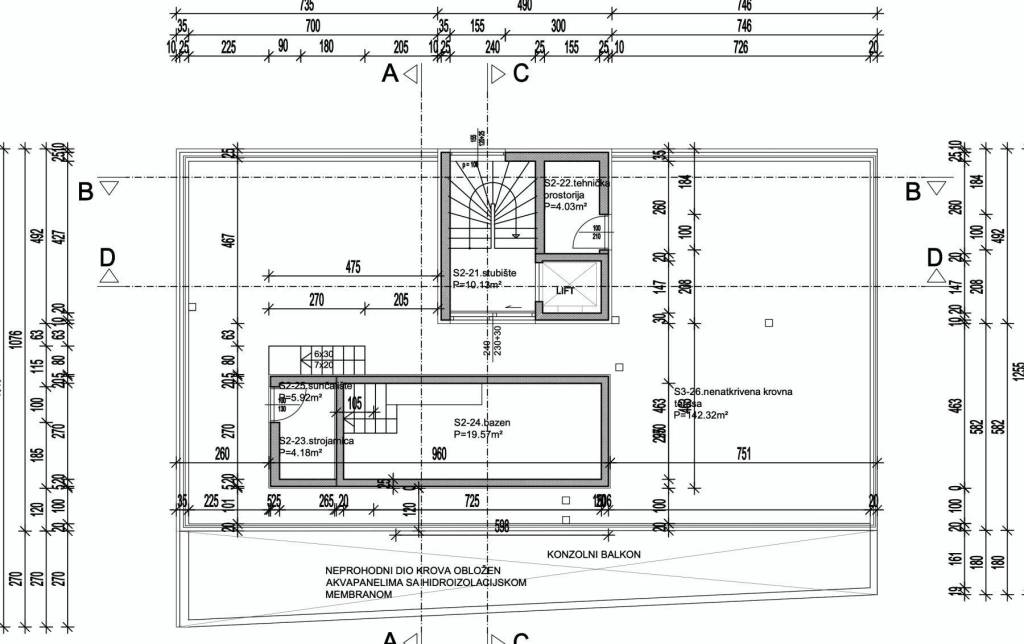 Apartment S-2 – 2nd Floor – living area 188.27 m² (3 bedrooms + 3 bathrooms + WC) + covered terrace (53 m²) + rooftop terrace with pool (57 m²) + outdoor parking space + garage parking space; net usable area 293.47 m² = EUR 1,664,820