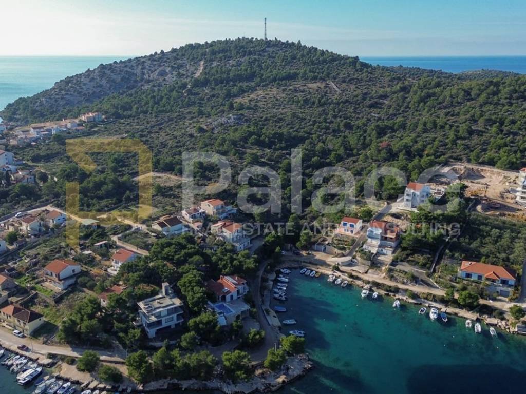 For sale is a building land located in a secluded cove, first row to the sea in the village of Ražanj in Rogoznica.