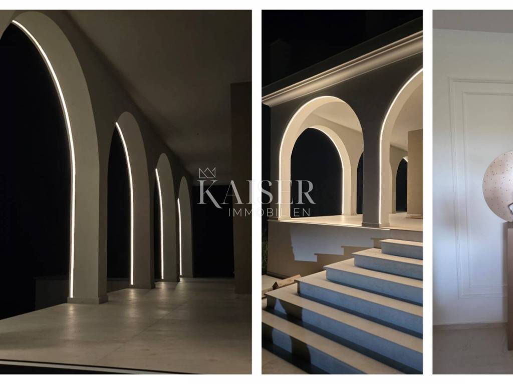 Kaiser Immobilien presents an attractive villa on the edge of the picturesque town of Buje, whose surroundings are known as a wine paradise with numerous vineyards and famous wineries. In Buje, in an extremely attractive location, a luxury villa with a swimming pool is for sale in the final phase of construction and decoration. It covers a total of 384 m2, of which 280 m2 is living space and 104 m2 of terrace. It consists of three floors, a basement, ground floor and first floor, and each room offers an irresistible view of the sea and olive groves. It includes 3 bedrooms with bathrooms, a kitchen and a living room, as well as unique content - an entertainment room, a cinema, a wine cellar, a spa, an additional kitchen (for support staff), a hidden panic room and a practical laundry storage system. The ground floor leads to a sunbathing area and an exceptionally designed swimming pool. At the back of the villa, there is a courtyard with several parking spaces and a rotating parking platform, which allows you to exit the courtyard by car without unnecessary maneuvering and reversing. The house is currently in the final stages of construction. The price is for a fully furnished property. If the buyer wants to furnish the house themselves, the price is reduced accordingly. Distance from the property to the town: Buje - Pula Airport, 76 km Buje - Trieste Airport, 87 km Buje - Ljubljana, 126 km Buje - Vienna, 507 km Buje - Prague, 833 km Buje - Munich, 528 km For more information and to arrange a viewing, please contact me at 00385 98339933 or at the email address: damir@kaiser-immobilien.hr The agency's commission for the buyer is 3% + VAT. The commission covers all services related to the purchase and is paid only in the case of purchasing a property, upon conclusion of the first legal act.
