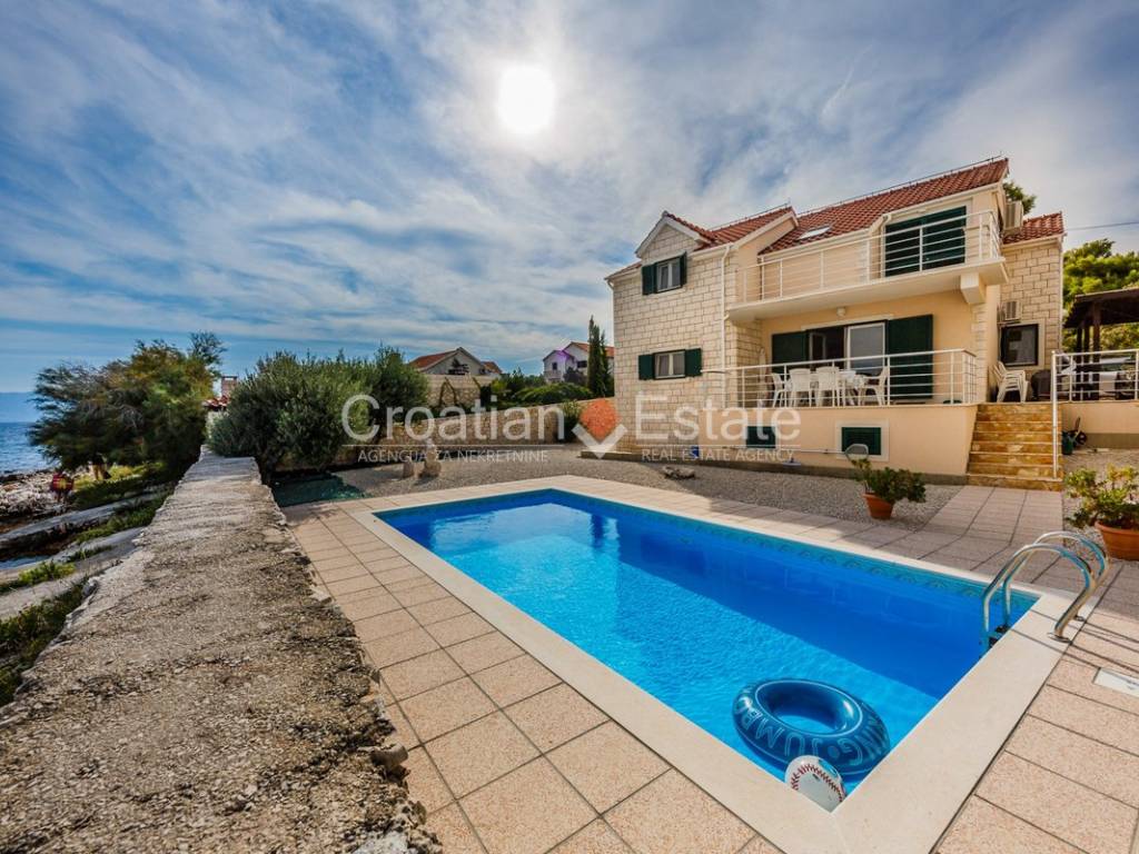 Brac Island – Seafront villa with pool for sale Newly built villa for sale, located on the northern side of the island Brač. It is positioned right next to the sea and there is no road between the sea and the house. The villa is arranged over ground floor, upper floor and a cellar in the souterrain. The ground floor includes large living room, kitchen, dining room, bathroom, one bedroom and two covered terraces. On the upper floor are three bedrooms, two bathrooms and a terrace. The house includes a parking space for four vehicles, a barbecue area and a pool. It enjoys a gorgeous view of sea and mountains. A great location, close to all amenities. About location: Brač is the largest island in the region of Dalmatia and the third biggest island from the Adriatic coast. It is located between Split and Hvar and it is very well connected with the mainland. The most common means of transport to reach the island is the ferry, catamaran, private boats and UBER boats. Brac is one of the sunniest islands with 2600 hours of sun in a year. The visitors are glad to visit the island for its wonderful beaches, unique nature and numerous monuments. In addition, a few authentic events and sport activities are organized through the whole year. Therefore, it is ideal for the summer holidays and for living during off season.
