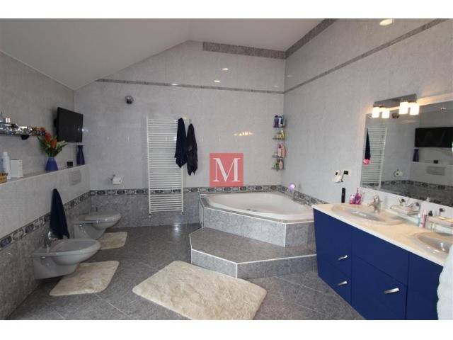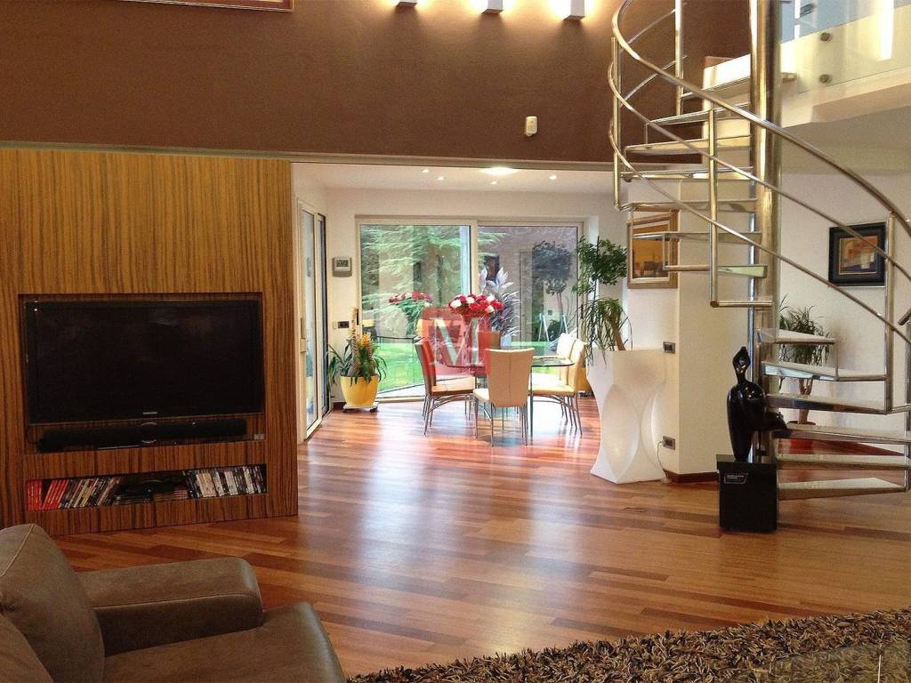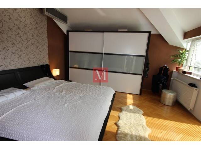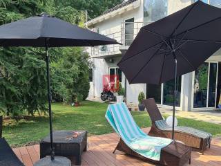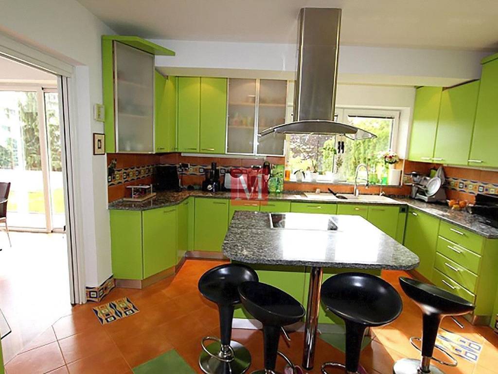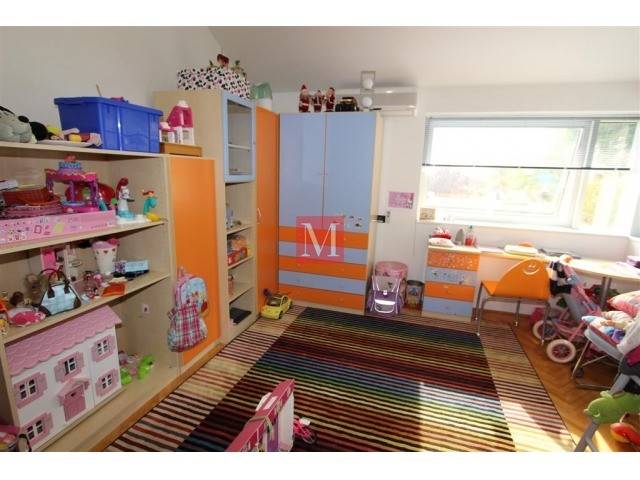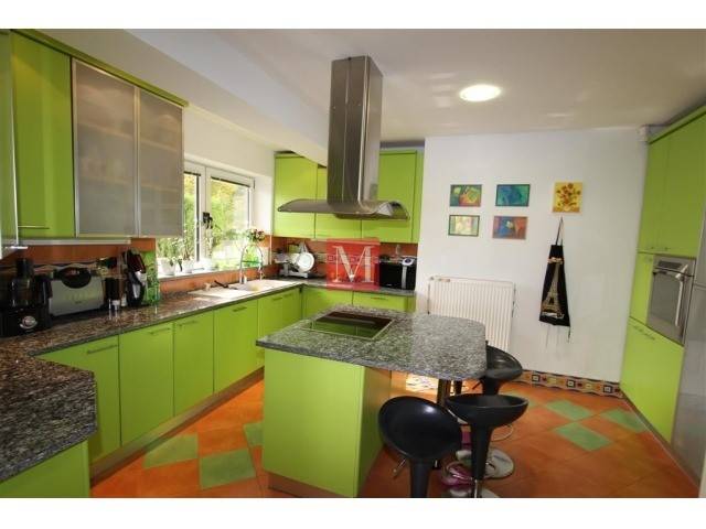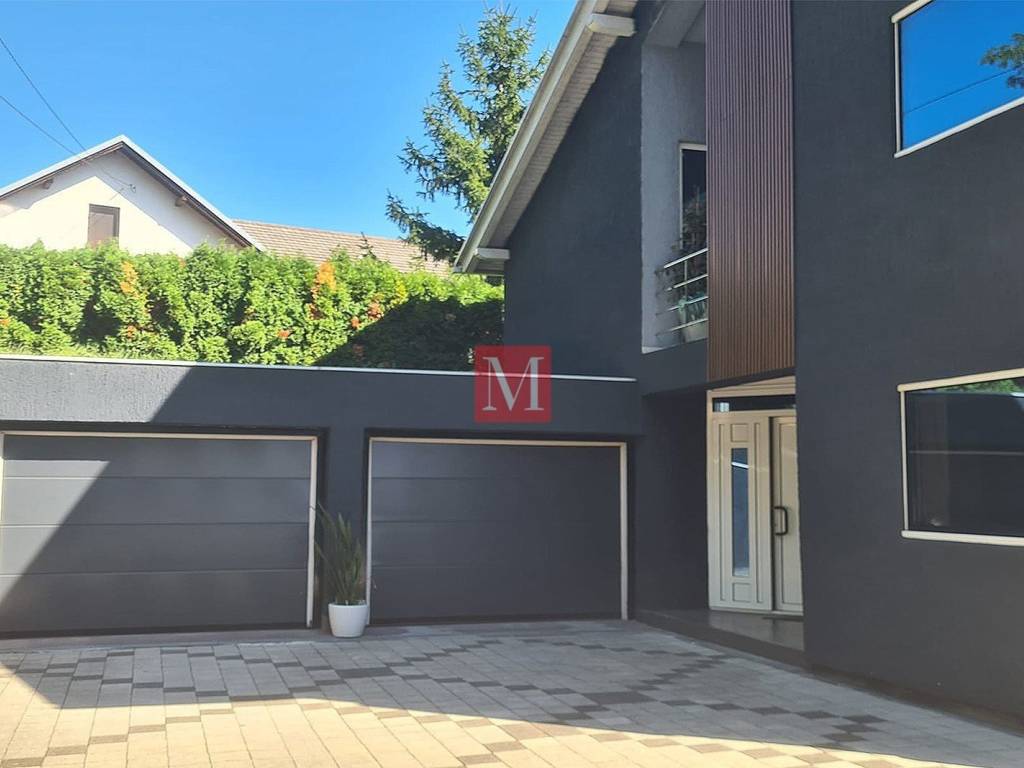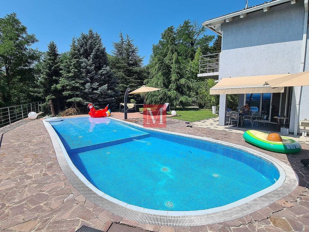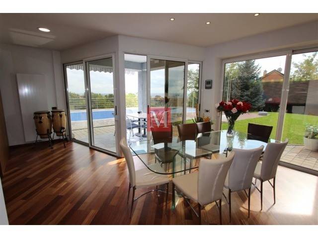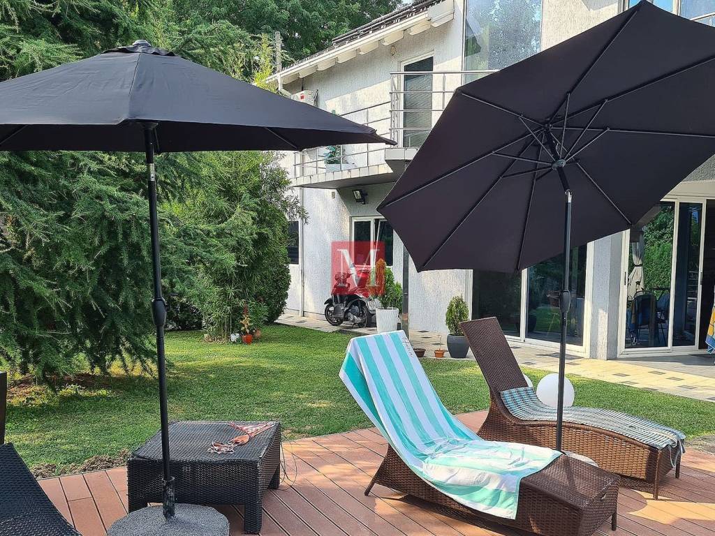 Attractive detached villa of 340 m2 with additional buildings and an outdoor pool on a plot of approximately 2,400 m2. It is divided into 2 floors. The ground floor has an entrance hall, kitchen, spacious living room with fire-place and dining area with access to the terrace and garden, study, toilet, utility room and boiler room. Upstairs there are 3 bedrooms, 2 bathrooms and a balcony. In the yard there is also an utility building of 4x8 m2, and a tool shed. The villa has 2 garage spaces and 5 additional parking spaces in the yard. Underfloor heating in all rooms. Solar panels for the house and pool heating. The house is very private and closed from the view of the neighbors, has an unconventional and atypical layout, extremely high ceilings in the living room, with designer interior decoration in which every detail has been thought out, and a very beautiful and well-kept garden with plants and vegetation that enhances the impression of uniqueness and attractiveness.Clear ownership, agency recommendation. Exclusively long-term lease with mandatory 2x deposit.