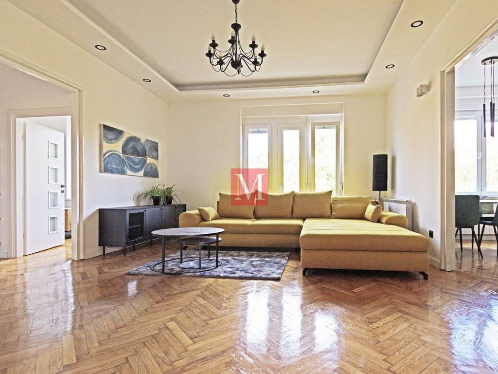 Luxurious, fully furnished 2-bedroom apartment of 100m2 with loggias, located in an attractive part of Zagreb - Medveščak, close to the center. It consists of a hallway, spacious living room, kitchen with dining room, master bedroom with private bathroom (shower) and access to the balcony, additional bedroom with work area, wardrobe, additional bathroom (shower) and furnished loggia ideal for relaxing and socializing. Parking is public, zone 1 Bana Jelačić Square, all amenities and public transport are nearby. Long-term rental with a mandatory deposit. Agency fee: 1 month's rent + VAT.