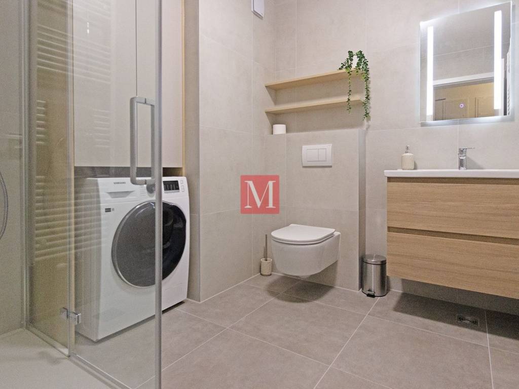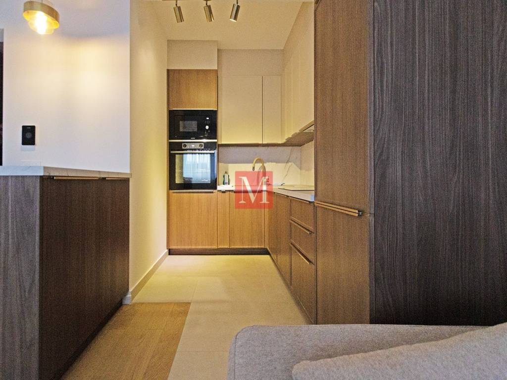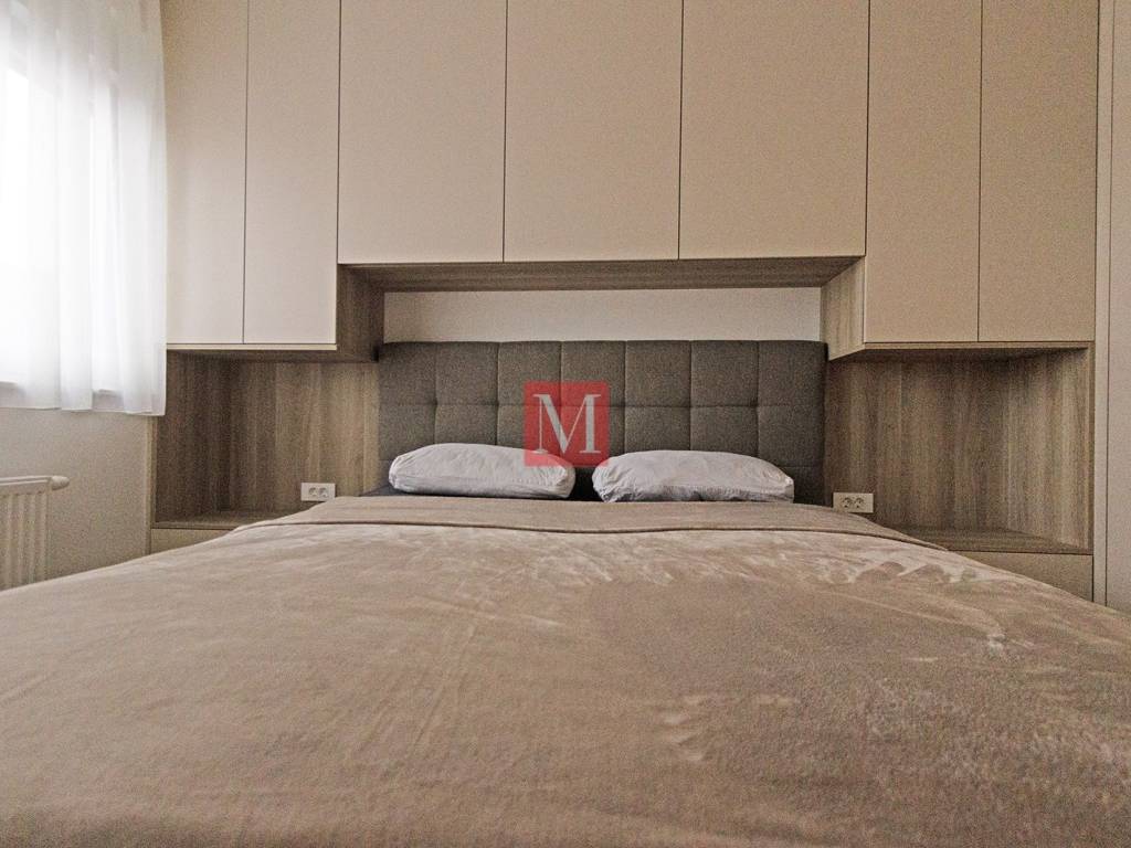 Beautiful, modern and never used 1-bedroom apartment with a balcony on the 1st floor of a new building with an elevator. It consists of an entrance hall with a built-in wardrobe, an open space living room with a dining area and a kitchen with access to a balcony, a large bedroom, and a bathroom (shower). It comes with one outdoor parking space. The apartment is fully equipped and furnished and is rented exclusively for long-term (minimum 1 year) with a mandatory 2x deposit. Agency fee: 1 month rent + VAT.