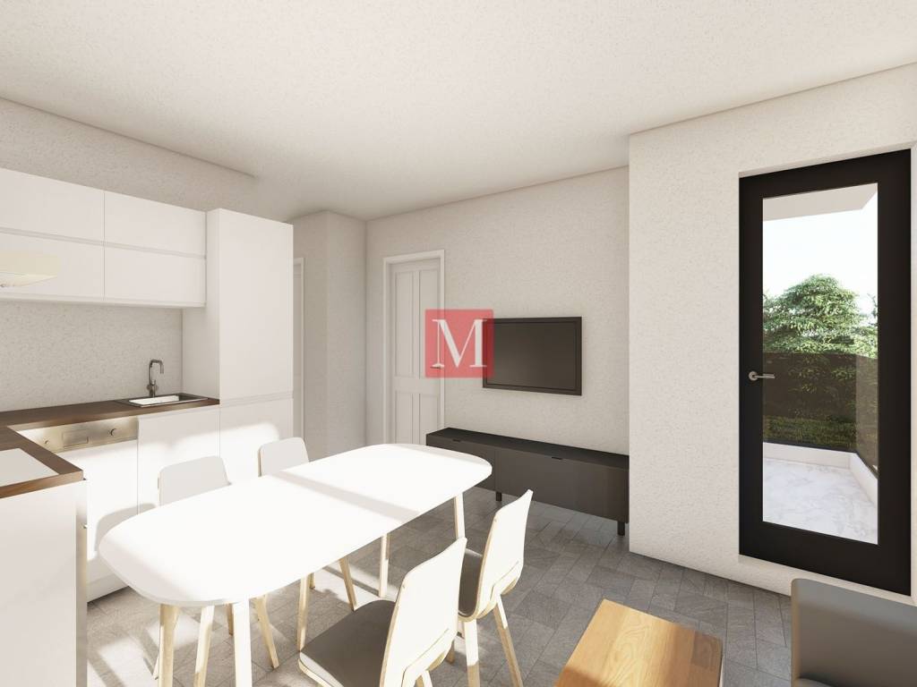 The apartment consists of a living room with dining room and kitchen, two bedrooms, bathroom, utility room, terrace and garden.