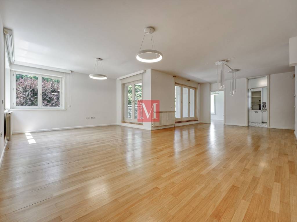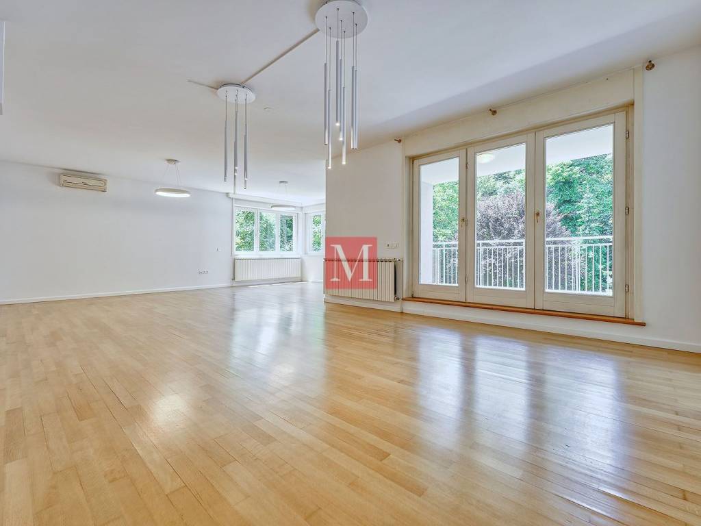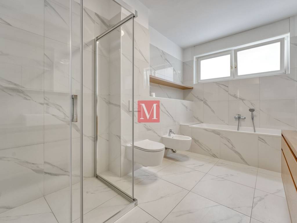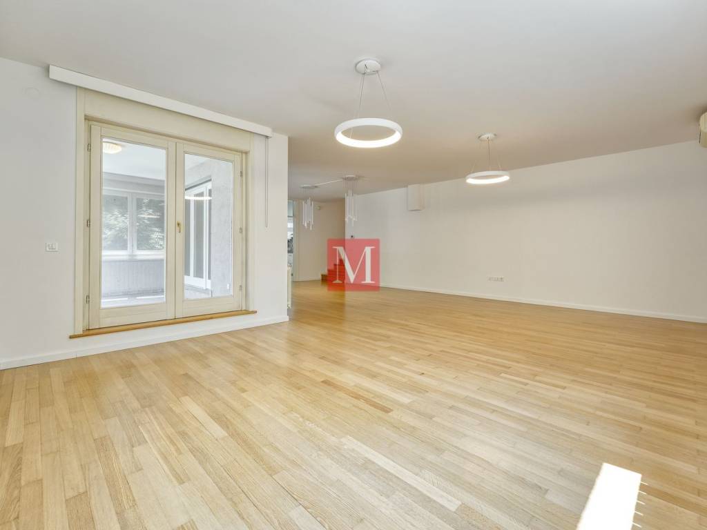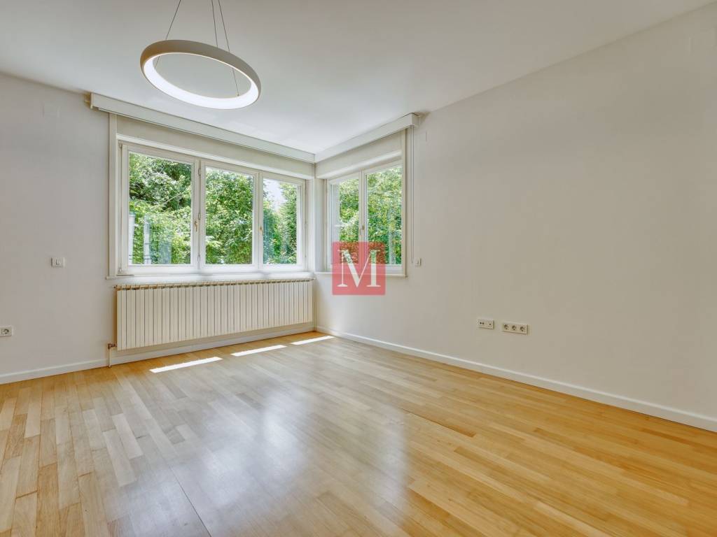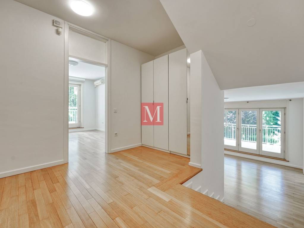 Gorgeous, spacious, newly renovated 4 bedroom apartment of 210 m2 with a terrace and garden on the 1st floor of a newer urban villa in Tu��kanac. It consists of an entrance hall, kitchen, spacious open space living room with dining area and exit to a terrace, 4 bedrooms, 2 bathrooms (bathtub & shower), 2nd terrace and a pantry. The apartment comes with a garage and additional parking space in the yard. A beautiful garden with a gazebo is for the common use of all tenants. Excellent location, quiet position, 15 min. easy walk to the city center. The apartment is leased at long-term and with a mandatory deposit. It can be fully furnished with an increased rental price. Available for rent from 09/2025. Agency commission: 1 month rent + VAT.
