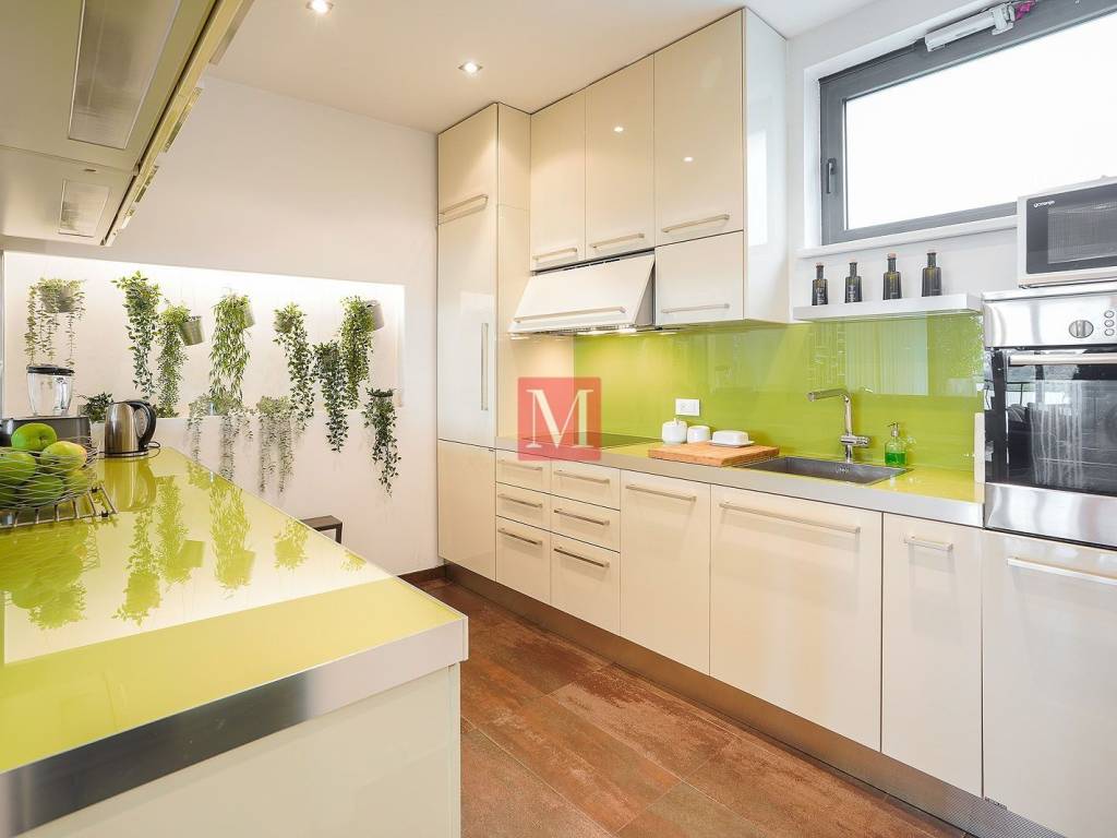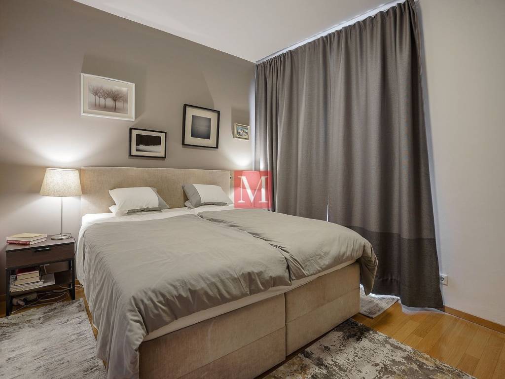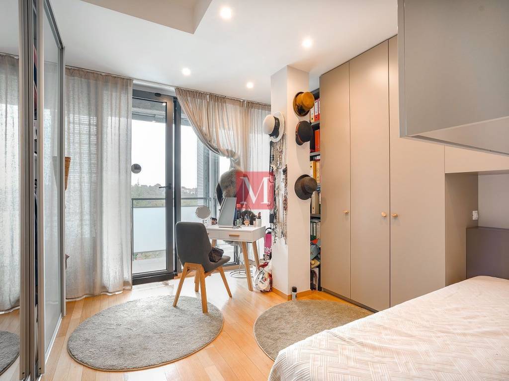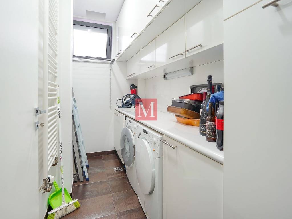 Gorgeous, luxurious, designer furbished 2 bedroom apartment with a large terrace and amazing views in a new building with an elevator in Sveti Duh. The apartment is the only one on the floor and consists of an entrance hall, open space living room with dining area and access to a covered terrace, a kitchen, master bedroom, bathroom (bathtub and shower), additional bedroom / study room and an utility / laundry room. It comes with a storage and 2 outdoor parking spaces. The apartment is fully furnished and equipped and it is leased at long term with a mandatory deposit. Available for rent from 10/2025. For people with style - recommended by the agency! Agency commission: 1 month rent+VAT.
