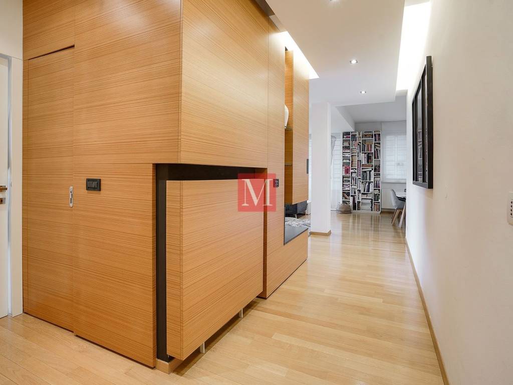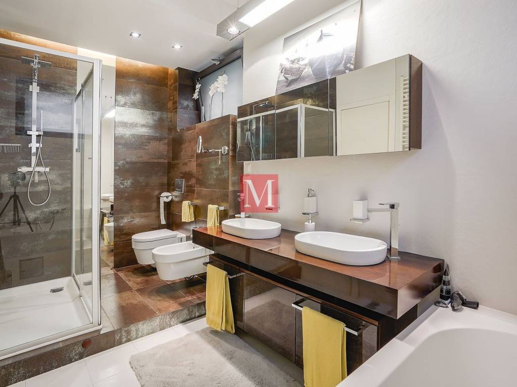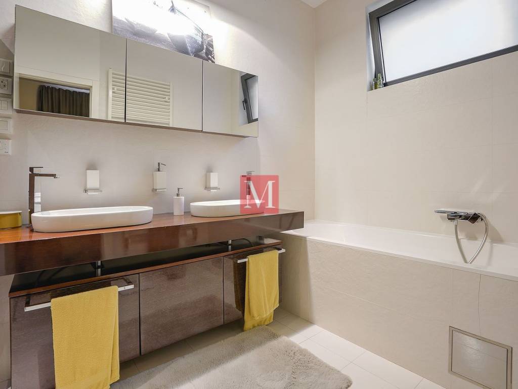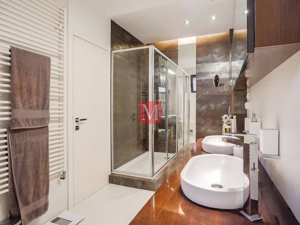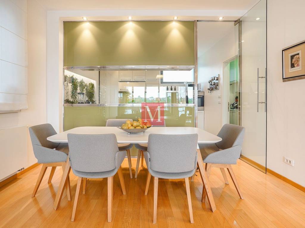 Gorgeous, luxurious, designer furbished 2 bedroom apartment with a large terrace and amazing views in a new building with an elevator in Sveti Duh. The apartment is the only one on the floor and consists of an entrance hall, open space living room with dining area and access to a covered terrace, a kitchen, master bedroom, bathroom (bathtub and shower), additional bedroom / study room and an utility / laundry room. It comes with a storage and 2 outdoor parking spaces. The apartment is fully furnished and equipped and it is leased at long term with a mandatory deposit. Available for rent from 10/2025. For people with style - recommended by the agency! Agency commission: 1 month rent+VAT.