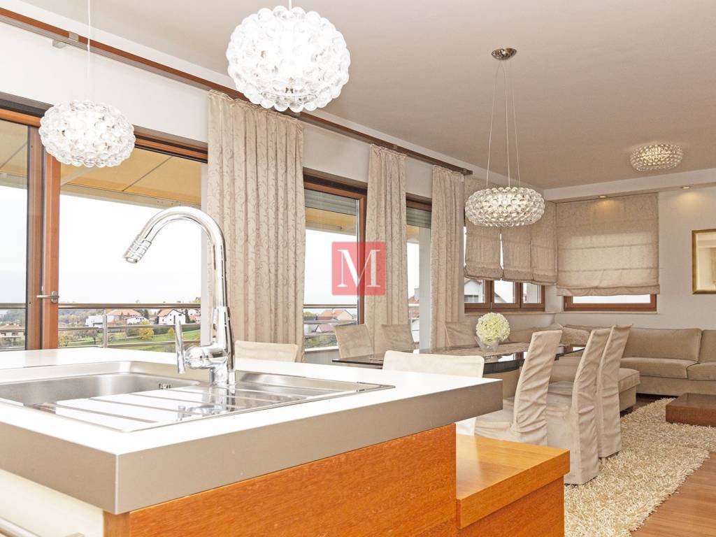 Beautiful and luxurious 3 bed penthouse, measuring 125 m2 with 3 balconies, garage and panoramic views in an urban villa in the area of Šestine.
