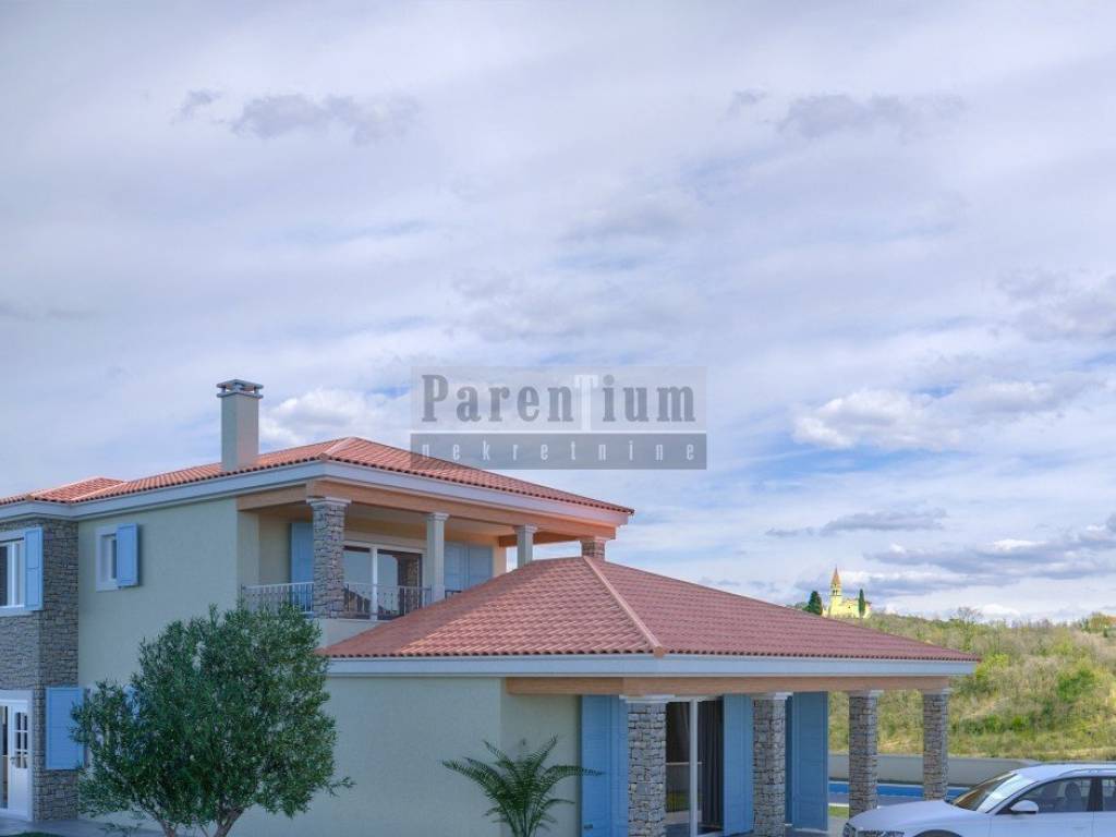 In the vicinity of Buje, driving towards Momjan, on a hill with a beautiful view, this well-designed villa is being built.