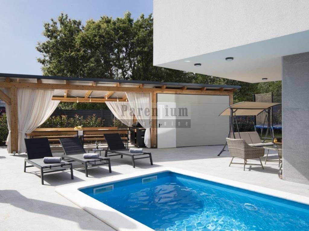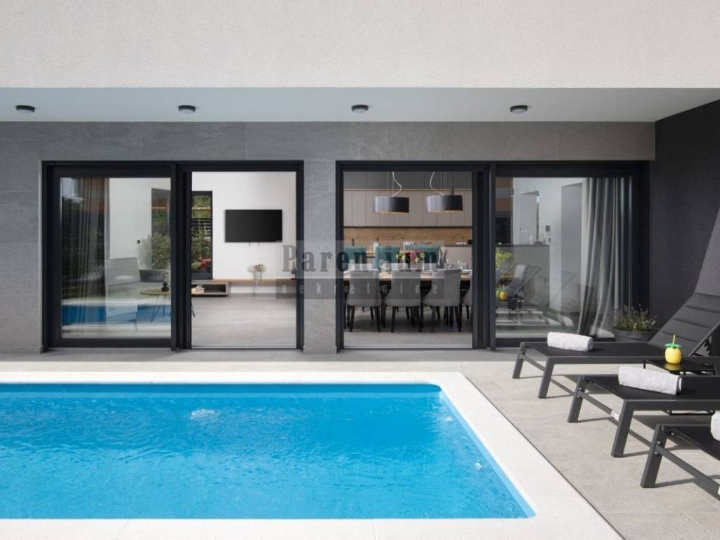 We are selling this beautiful modern villa in Medulin. The villa has a net area of 300m2, is located on a plot of 600m2. The villa consists of a basement, ground floor and first floor.