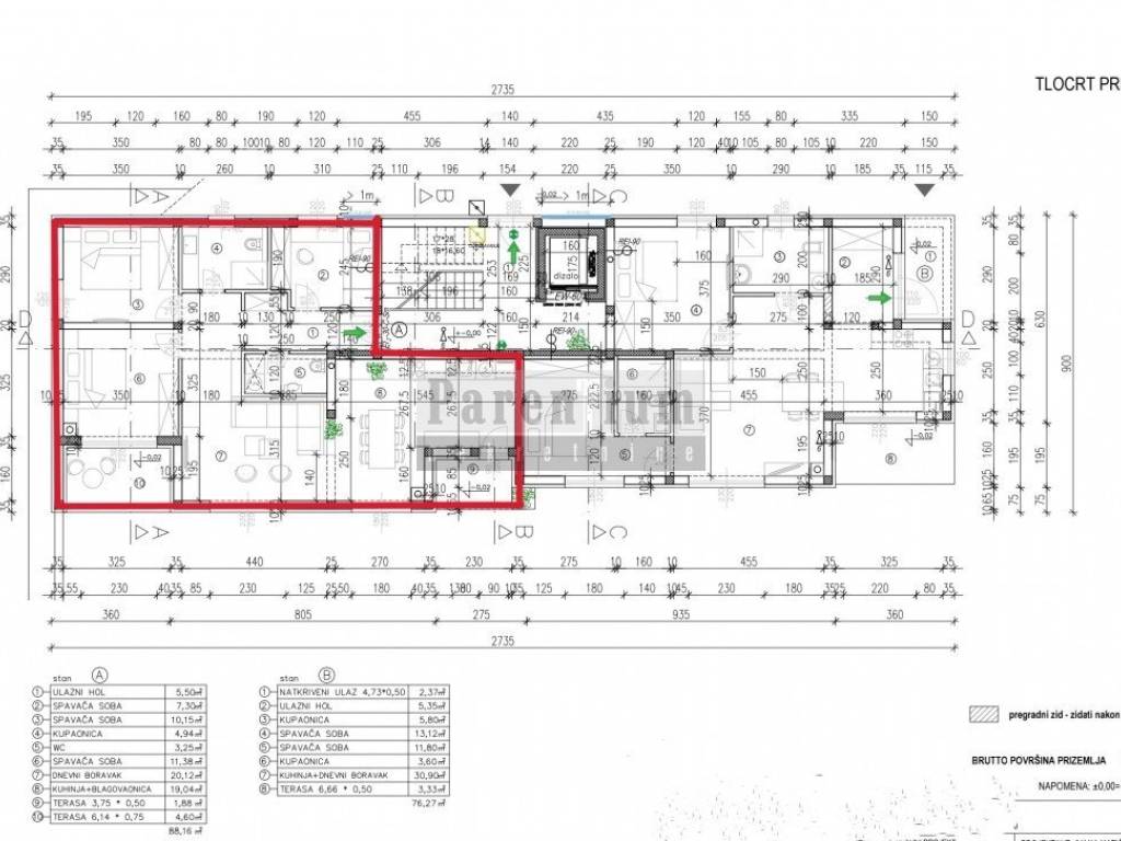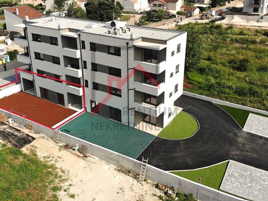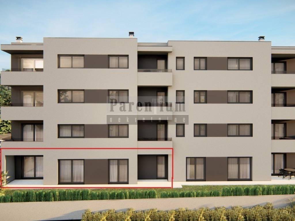 Apartment A, ground floor Apartments for sale in a quality new building in Tar near Poreč and Novigrad. They are only 3500 meters from the beautiful beaches and 500 meters from the town center. The modern multi-apartment building is exclusively for residential use, with a total of 11 apartments spread over 4 floors. The ground floor apartment that we present to you is 88.16m2 in size. The apartment consists of 3 bedrooms, bathroom, toilet, kitchen with dining room and living room. The apartments will have electric underfloor heating in all rooms. The first phase will be installed for inverter air conditioners in the living room and bedrooms. The glass wall will be PVC with three-layer glass. Quality joinery will have good heat and sound insulation. The building has an elevator that extends through all four floors. Each apartment will have two parking spaces. An excellent property that represents an ideal investment opportunity. The buyer does not pay real estate sales tax.