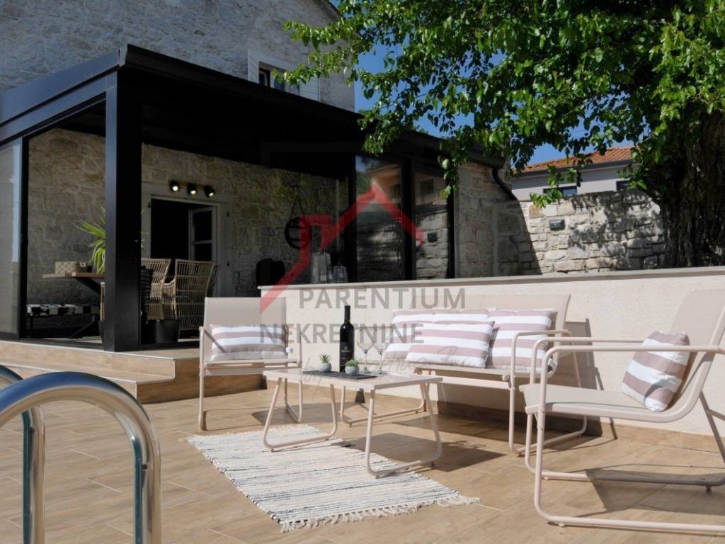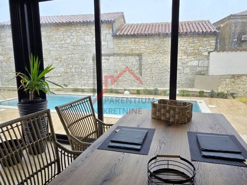 In the surroundings of the picturesque and colorful Istrian town of Višnjan, this beautifully decorated and renovated stone house is for sale. Detached stone house with a yard on a plot of 353m2.