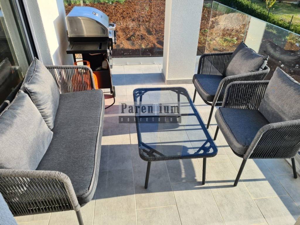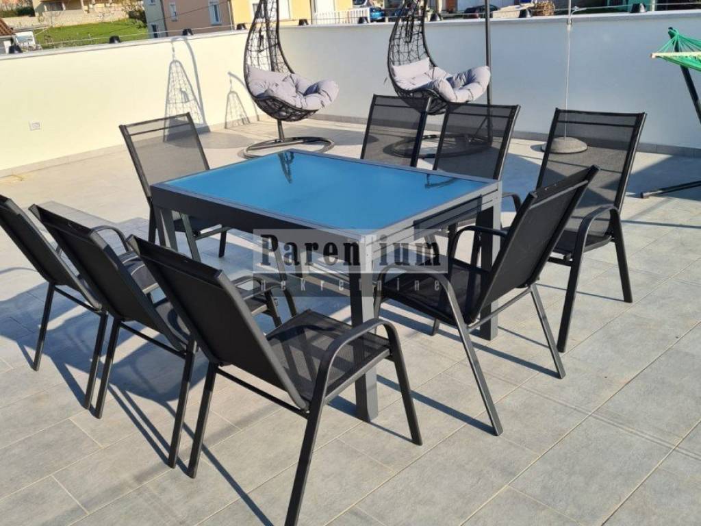 An apartment for sale on the first floor, with two bedrooms and a living room, a kitchen with a dining room, a terrace and a bathroom, as well as a wardrobe and a pantry. The apartment has access to the roof terrace with a view of the sea. The apartment has a garden of approx. 90m2 with parking space. Nicely decorated apartment, ready to move in.