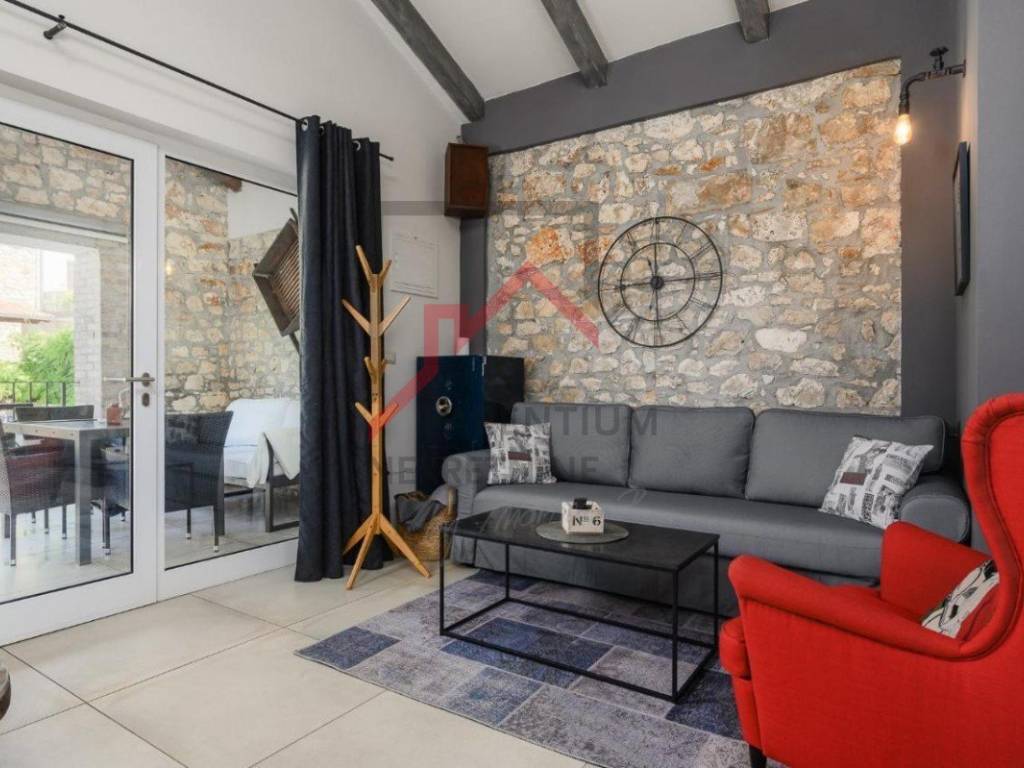 In a picturesque setting, far from the hustle and bustle of the city, there is a unique stone house that offers the perfect harmony of authentic atmosphere and modern amenities. This elegant property, located in a quiet location, extends over two floors and encompasses a total of 80 m of carefully designed space.