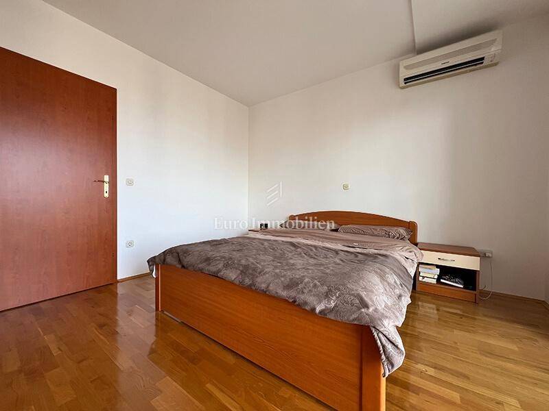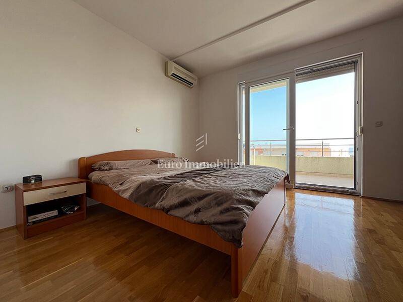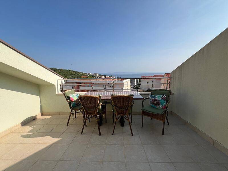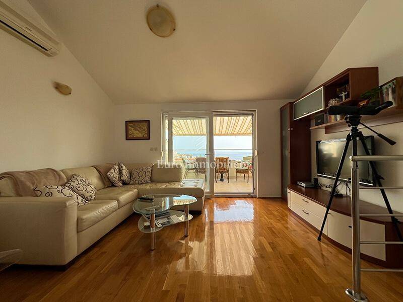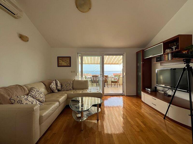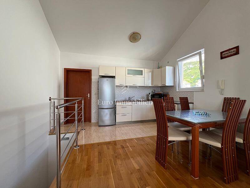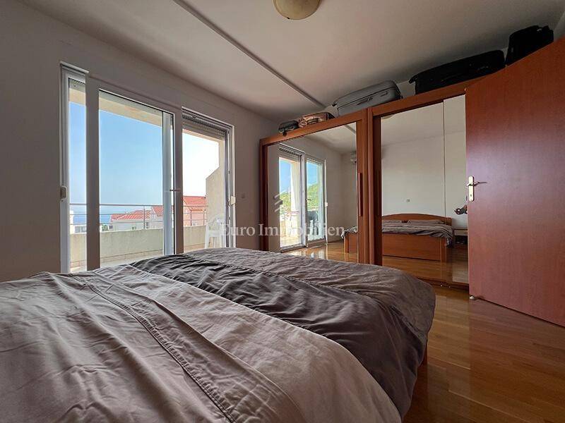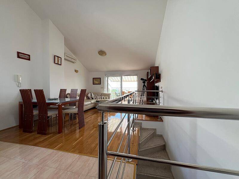 Beautiful three-bedroom apartment of 88 m2 with a sea view, near the beach in Promajna. The apartment is two-storey, and is located on the first floor with a gallery of an urban villa that has a total of 5 residential units.