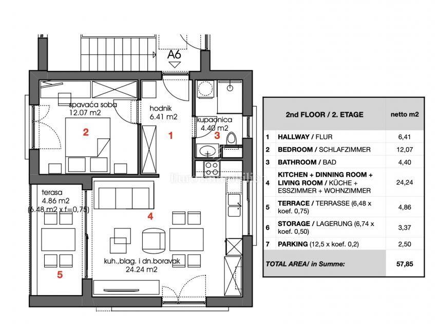 Located in a new, top-quality building currently under construction, this 57.85 m² apartment is ideal for family living or as a lucrative investment.