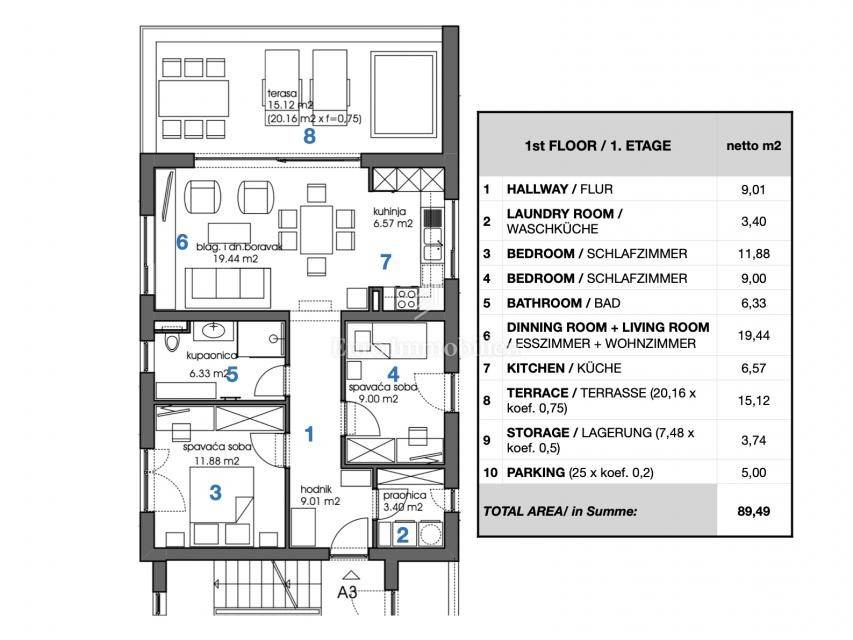 Located in a new, top-quality building currently under construction, this 89.49 m² apartment is ideal for family living or as a lucrative investment.