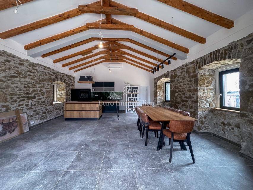 A beautiful newly renovated stone house for sale, combining the charm of Istrian tradition with the comfort of modern living. The renovation was completed in 2025, and the house is located in a quiet location near Buzet, surrounded by greenery and privacy.