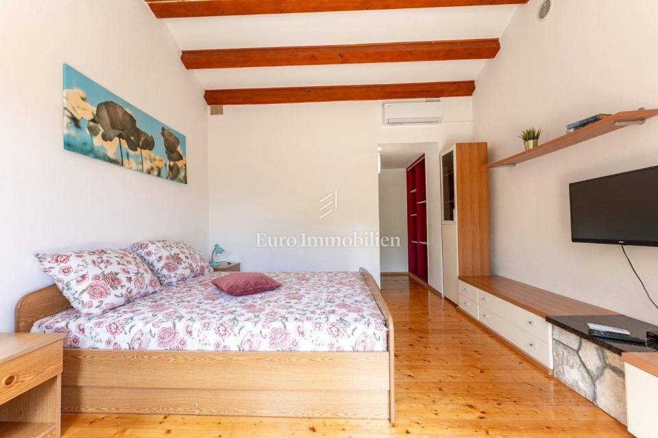 The property consists of two separate houses, each with its own entrance, making it ideal for two families or friends who want to spend time together but maintain their privacy. This property exudes warmth, and the fireplace and rustic decoration elements provide a special atmosphere.