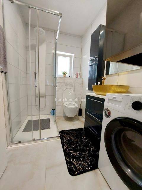 The apartment also has two storage rooms, an entrance terrace with a small garden as an additional place for socializing and relaxing, and two parking spaces.