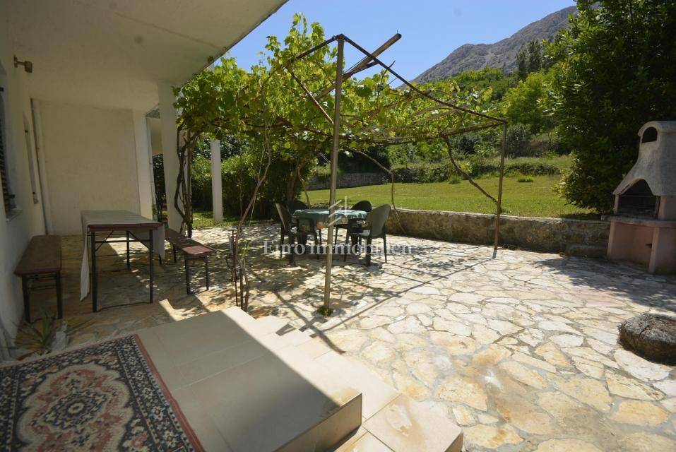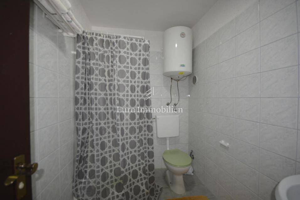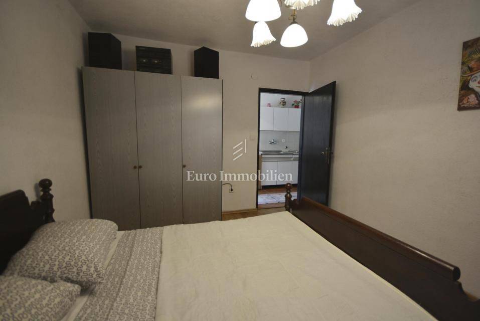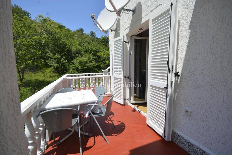 In a quiet location surrounded by greenery, a few minutes drive to Baška is a semi-detached house with five apartments. The house has a residential area of 288 sqm and extends over three floors. On the ground floor there is a spacious apartment of 100 sqm with living room, kitchen and dining room, three bedrooms and bathroom. The ground floor has access to the terrace where there is a lounge area and barbecue in the stone. The first and second floor have the same layout of the rooms, each floor consists of two apartments of 45 sqm. The apartments consist of a kitchen, two bedrooms, a bathroom and a balcony. The house is air-conditioned, neatly maintained and has a tavern as an additional space. The courtyard is cultivated with low and high Mediterranean plants and has a parking space for four vehicles. The house is categorized for rent, four apartments are rented and the future owner will take over the already established business!