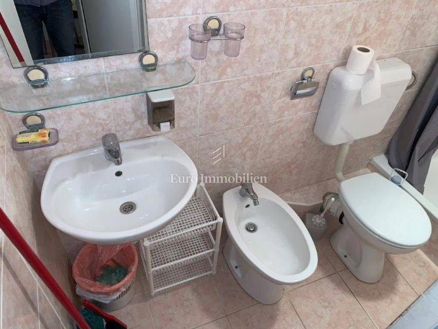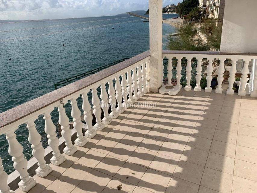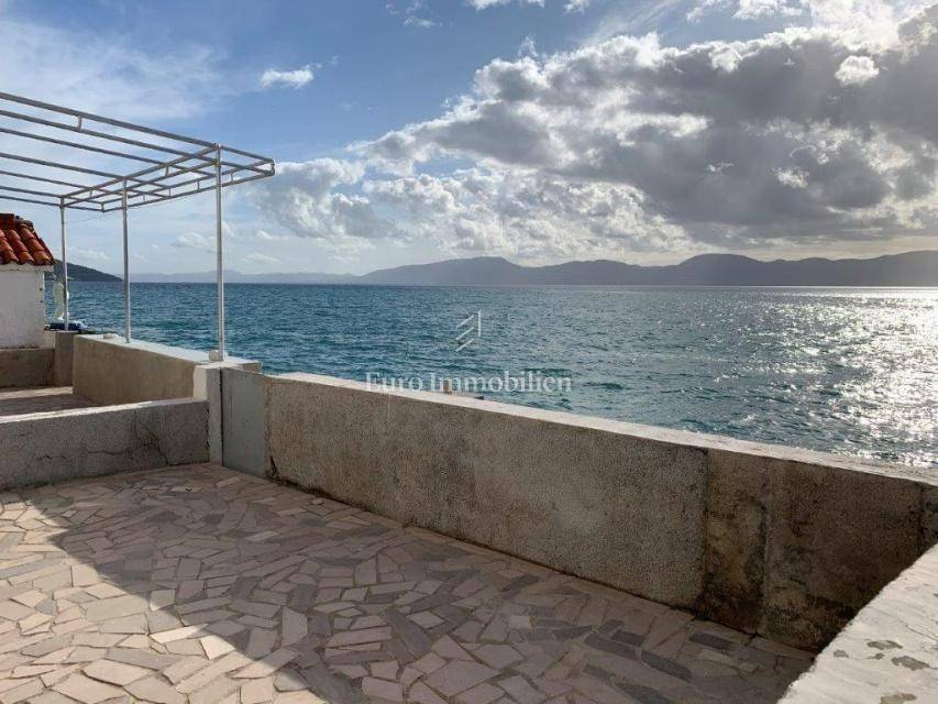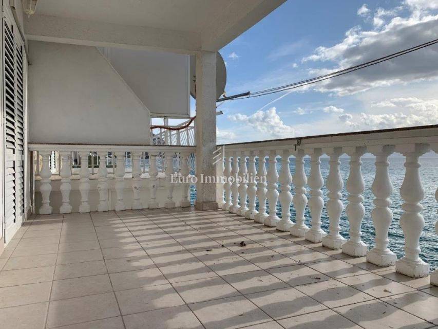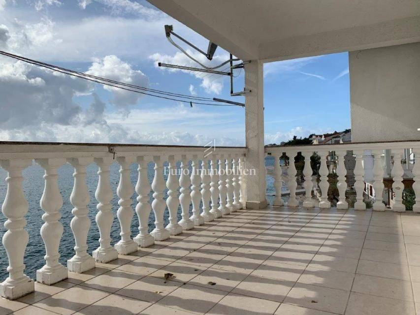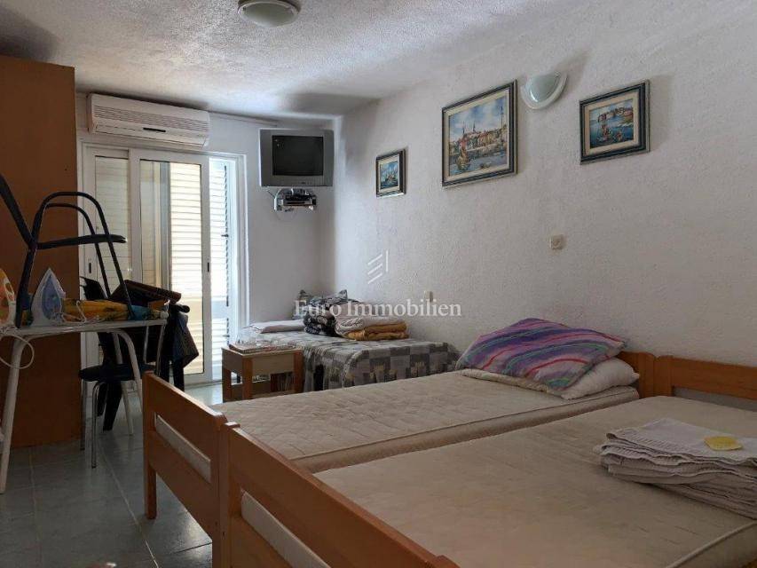 The house has an area of ​​196 m2 and is divided into three floors (5 apartments), built on a plot of 80 m2. An auxiliary ground floor building of 12 m2 is for sale with the house, which is located on the pebble beach next to the house. On the ground floor there is a one bedroom apartment consisting of a kitchen and living room, a bedroom, a bathroom and a large terrace / sun deck with direct access to the sea and a private concrete beach. The first and second floor of the house consists of 4 separate studio apartments. The house is completely oriented towards the sea and from every part of the house there is a beautiful panoramic view of the sea and islands that cannot be enclosed. All apartments are fully furnished and air conditioned. The auxiliary facility was completely renovated in 2018 and currently serves as a warehouse. The location of this property is special because the house itself leads directly to a small beach used only by the owner of the house, and where it is possible to moor a smaller boat. Behind the house there is a parking lot for 4 cars. Ownership is in order.