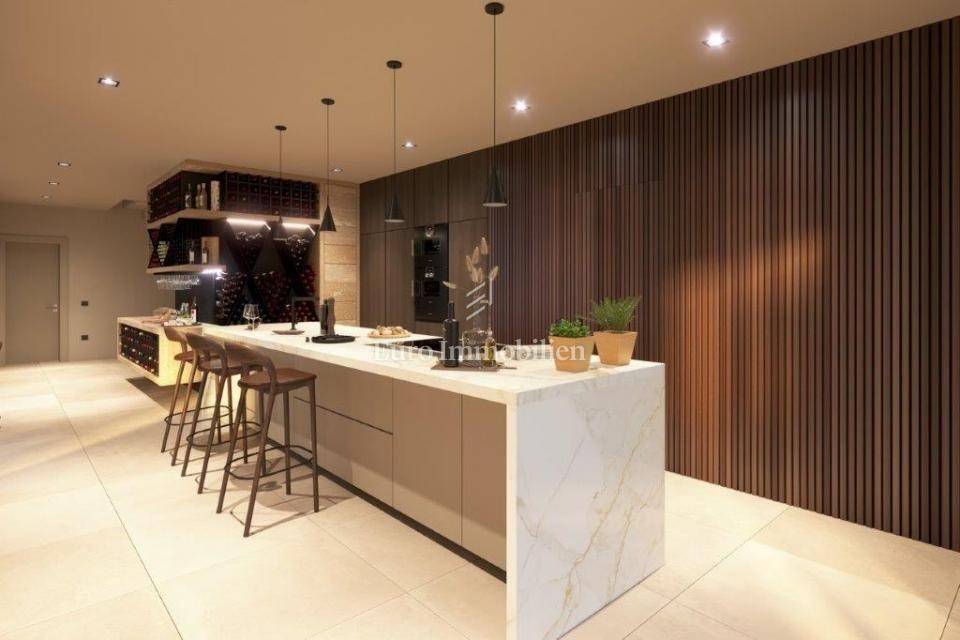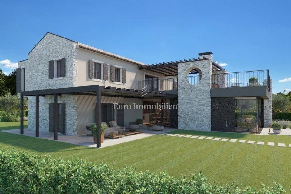 Quality modern new built villa, located in an extremely beautiful and quiet location overlooking the sea. Villa of 230 m2 consists of 4 bedrooms and 4 bathrooms, toilet, on the first floor there is a spacious terrace with Whirlpool. Swimming pool of 50 m2 with salt water and tiles. Covered parking of 60 m2 with storage. Barbecue area of 42 m2 with toilet. Underfloor heating (heat pump) is installed, air conditioners are used for cooling. Plot is 1600 m2. The villa is located approximately 13 km away from Poreč and the sea - near Vižinada.
