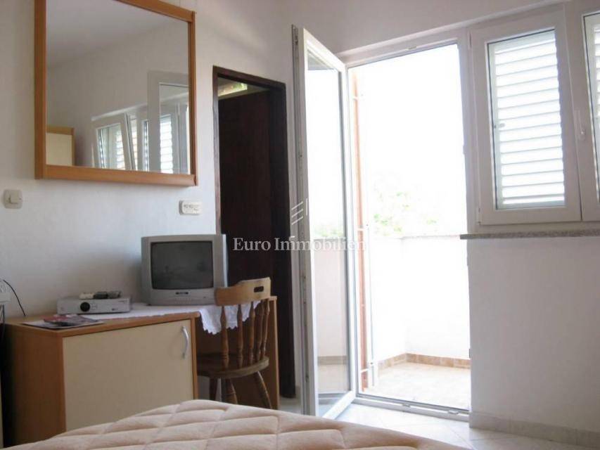 Town of Krk - house for sale in a great location! The house consists of basement, ground floor and first floor. On the ground floor are two apartments, a studio apartment and a one bedroom apartment with a large terrace. Upstairs are two apartments. There is a storage in the basement. The garden is fenced, ideal for a swimming pool and barbecue. The house has several parking spaces. Ready to move in now!