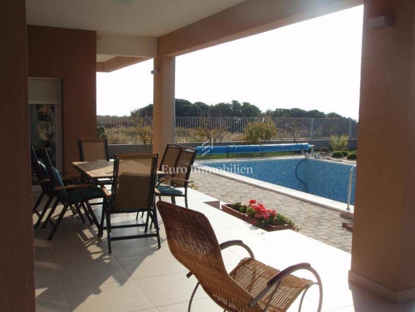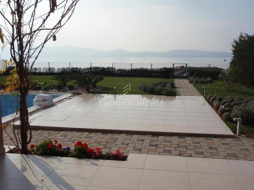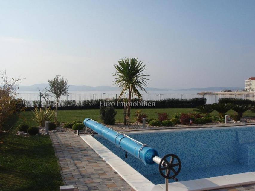 This beautiful villa is located in Sukosan, right on the beach, first row to the sea. It has a lush garden and environment with a swimming pool, on a plot of 950 m2.