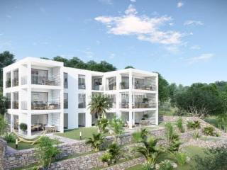 The apartment on the west side extends to 92.64 m2 and consists of two comfortable bedrooms, each of which has 12 m2 and each room has large floor-to-ceiling windows. The modern bathroom is full of light, and the living room comes with a kitchen and dining area. The kitchen has a granite worktop, induction hob, dishwasher and oven. The covered terrace, of 17.28 m2, protects from the sun and rain and is surrounded by a glass fence so that it does not interfere with the beautiful view at any time of day.