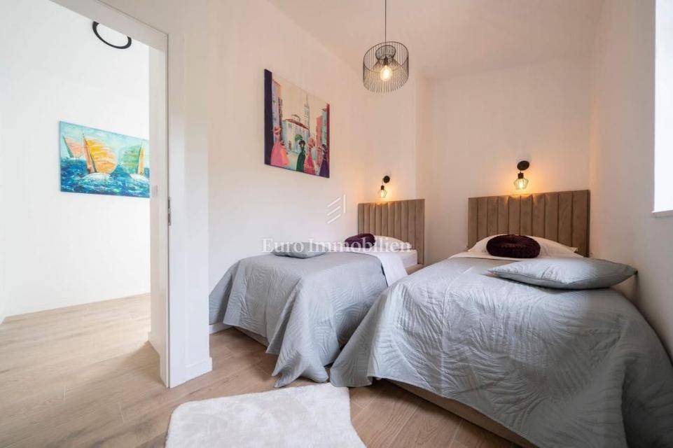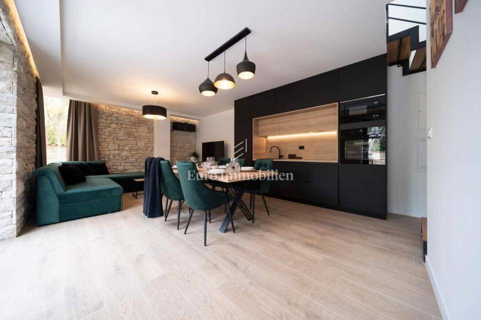 The property was built of old stone from 1900. The thickness of the wall is as much as 60 cm. It is divided into the ground floor and the first floor. The ground floor has a living room, kitchen, dining room, bathroom, and garden with a pool. Upstairs are two bedrooms and another bathroom. The house is air-conditioned and under the whole house is underfloor heating. It is fully equipped with high-quality furniture. It is surrounded by a beautiful garden with a heated pool. It is located in a great and quiet location close to all amenities for a pleasant holiday and life.