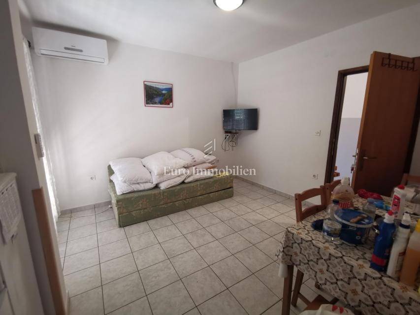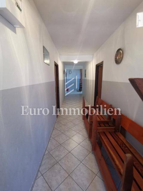 The property consists of a basement, ground floor, and first and second floor. It also has a spacious garden with 12 parking spaces. On the ground floor, there is a storage space and there is a possibility of conversion into a tavern, restaurant, or similar restaurant, garage, and a large covered terrace. On the first floor, there are four apartments, each of which has a bedroom, living room with dining area, kitchen, bathroom, and loggia. There is another large terrace and a service room. The second floor is in the unfinished phase, it can be arranged as the first floor. The property is fully air-conditioned and the rooms are ready for tourist rental!