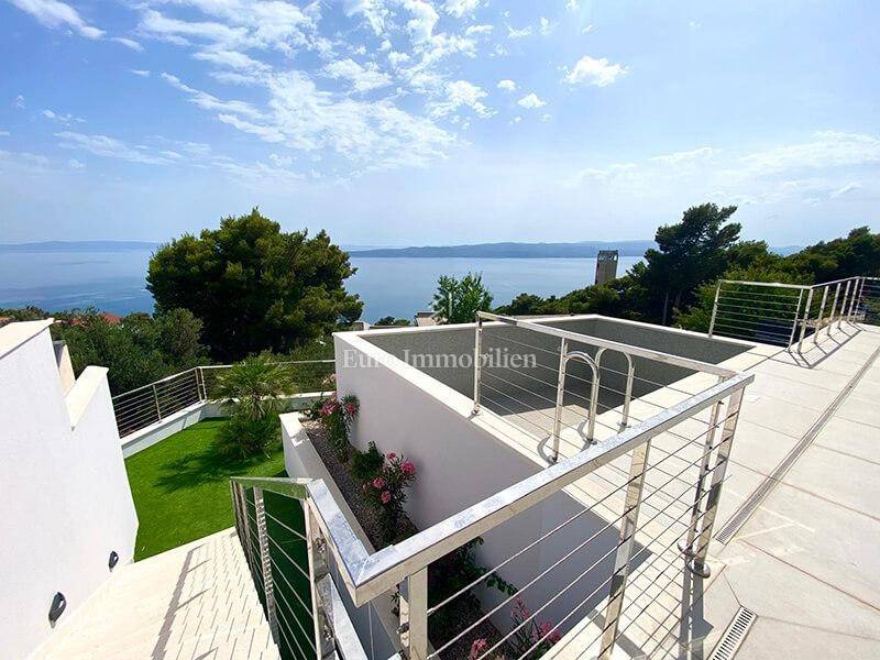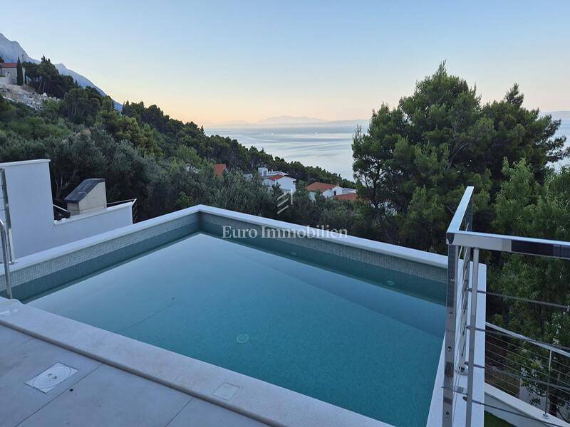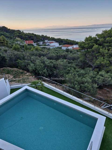 A new modern villa with a pool and a panoramic view of the sea and islands in Brela is for sale!