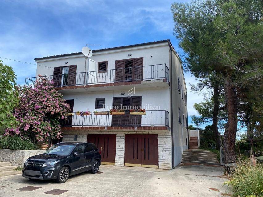 Detached house in the first row to the sea, with a beautiful view of the sea. It consists of 10 bedrooms and 7 bathrooms, and is equipped with air conditioning. There is a barbecue and a place for socializing in the garden. Access to the house is possible by car, parking is in front of the house, and a garage is also available. An excellent opportunity for year-round housing, as well as for tourism.
