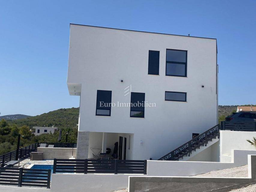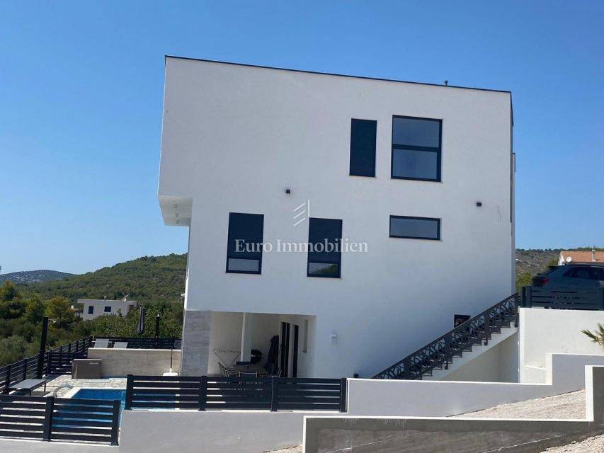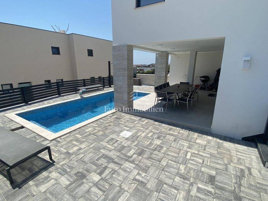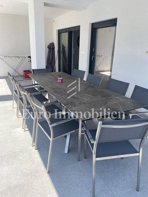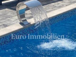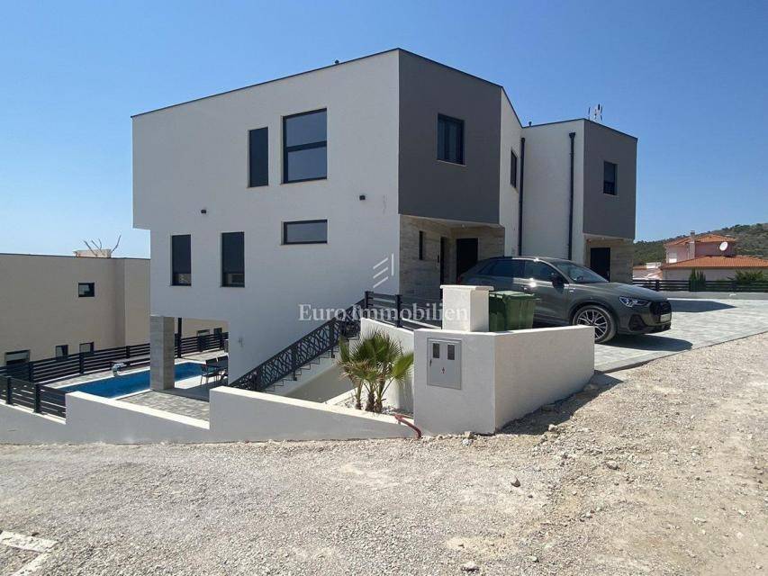 The house has a modern appearance, and was built in 2022 according to modern construction standards and is equipped with top-quality materials and devices: Styrofoam facade, ALU PVC carpentry in anthracite color, anti-burglary entrance door, ceramic floor coverings, Italian ceramics in the bathrooms, sanitary facilities, air conditioning system with air conditioning devices hidden in the ceiling in all rooms, kitchen and living room, underfloor heating, heat pump for the house and for the pool, Smart Home system, pool.