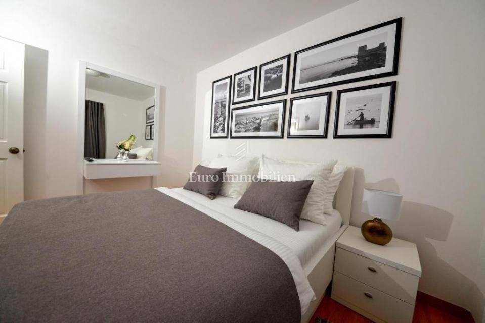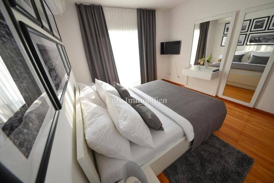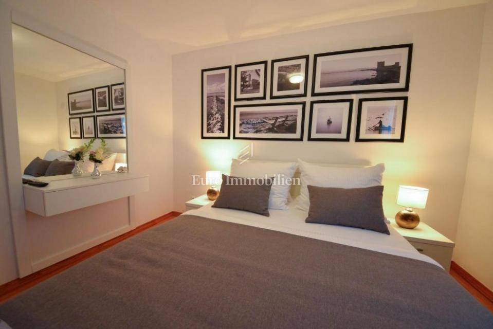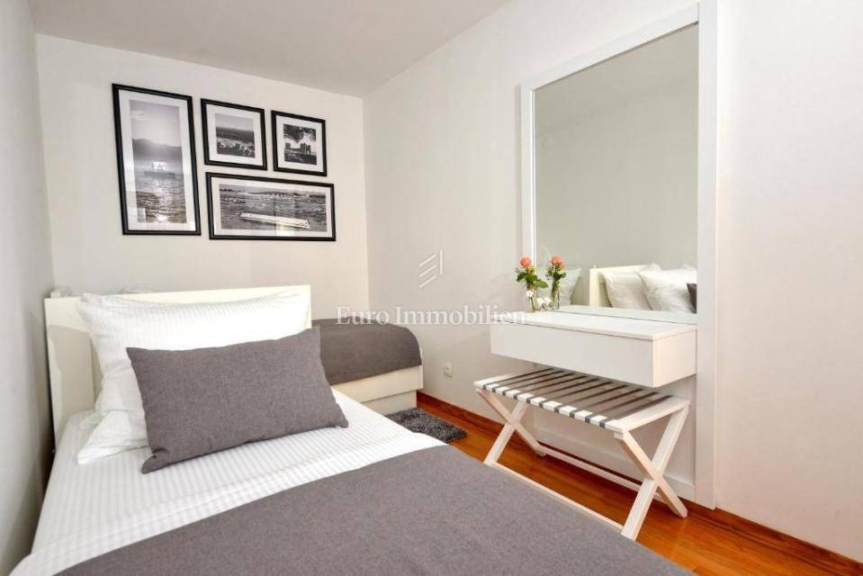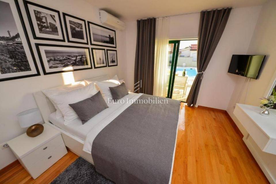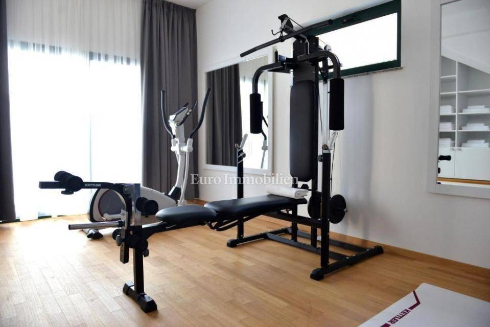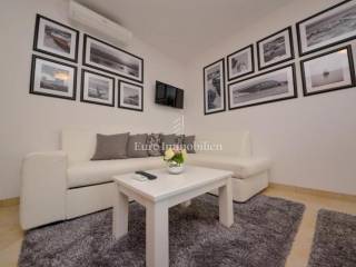 The property consists of 3 residential units that extend through the ground floor and the first floor. The villa has a total of three open-space living rooms, kitchens and dining rooms, five bathrooms, seven bedrooms, one entertainment room, one fitness room, and four balconies. It has a garage and a garden where there is a garden, a swimming pool, and a place to hang out with friends and family. The villa is fully furnished and equipped. It is located in an excellent location on the island of Vir, second row to the sea. The island of Vir is unique in that it is connected to the mainland by a bridge. For more information about the property, contact us!