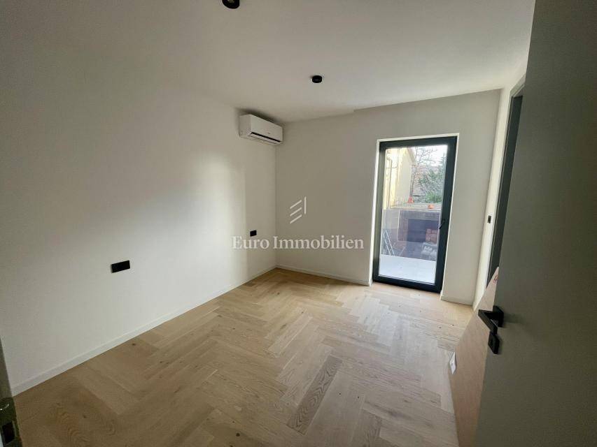 The apartment is located on the first floor of a residential building and consists of a hallway, toilet, three bedrooms with their own bathrooms, living room with kitchen and dining room, laundry room, summer kitchen, balcony and a spacious covered terrace of 29.27 m2 from which there is a beautiful view of the sea. Underfloor heating is installed in the entire apartment. First-class parquet has been installed in the rooms, and first-class ceramic tiles and sanitary ware in the bathrooms. Aluminum joinery is installed. It is for sale unfurnished, but it is possible to furnish the property by agreement. There are two parking spaces. There is a swimming pool in the garden, which can be used by all tenants.