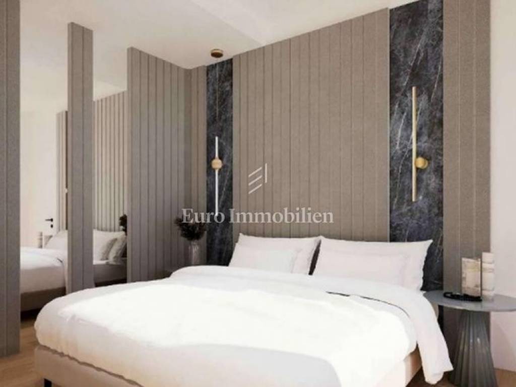 In the basement, the apartment has an entrance area, a social area (wine cellar), a storage room, an entrance hall, a toilet and a laundry room, a dressing room, a wellness and gym, a swimming pool.